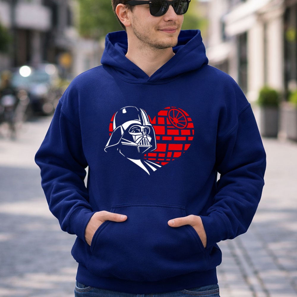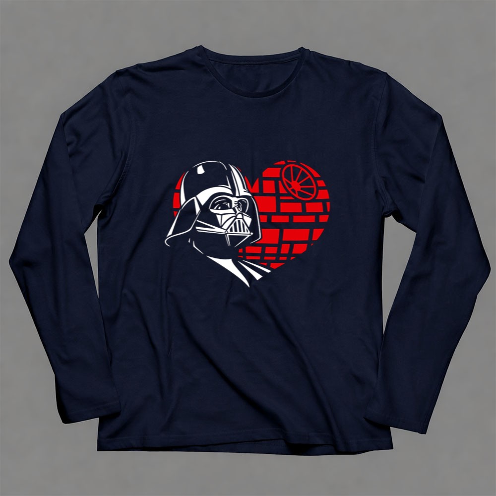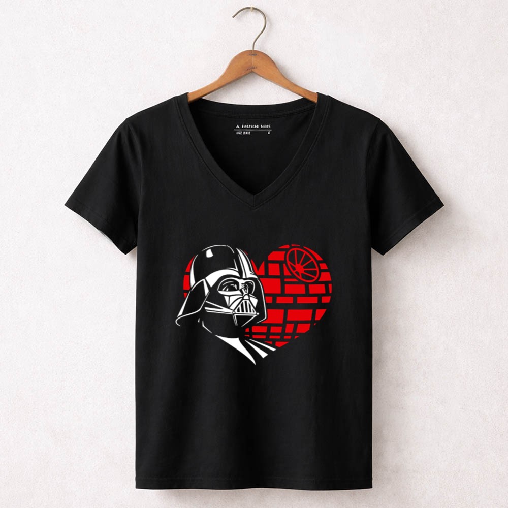 This design captures the essence of love through a playful mashup of iconic Star Wars imagery. The heart-shaped Death Star envelops the silhouette of Darth Vader, symbolizing how even the dark side can embrace love. It’s a thoughtful representation of how fandom and romance can intertwine, creating a truly unique expression of affection.
