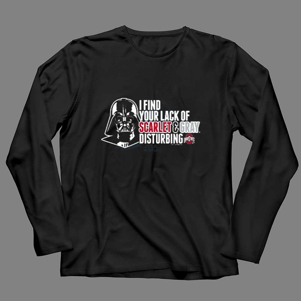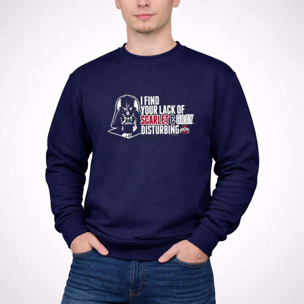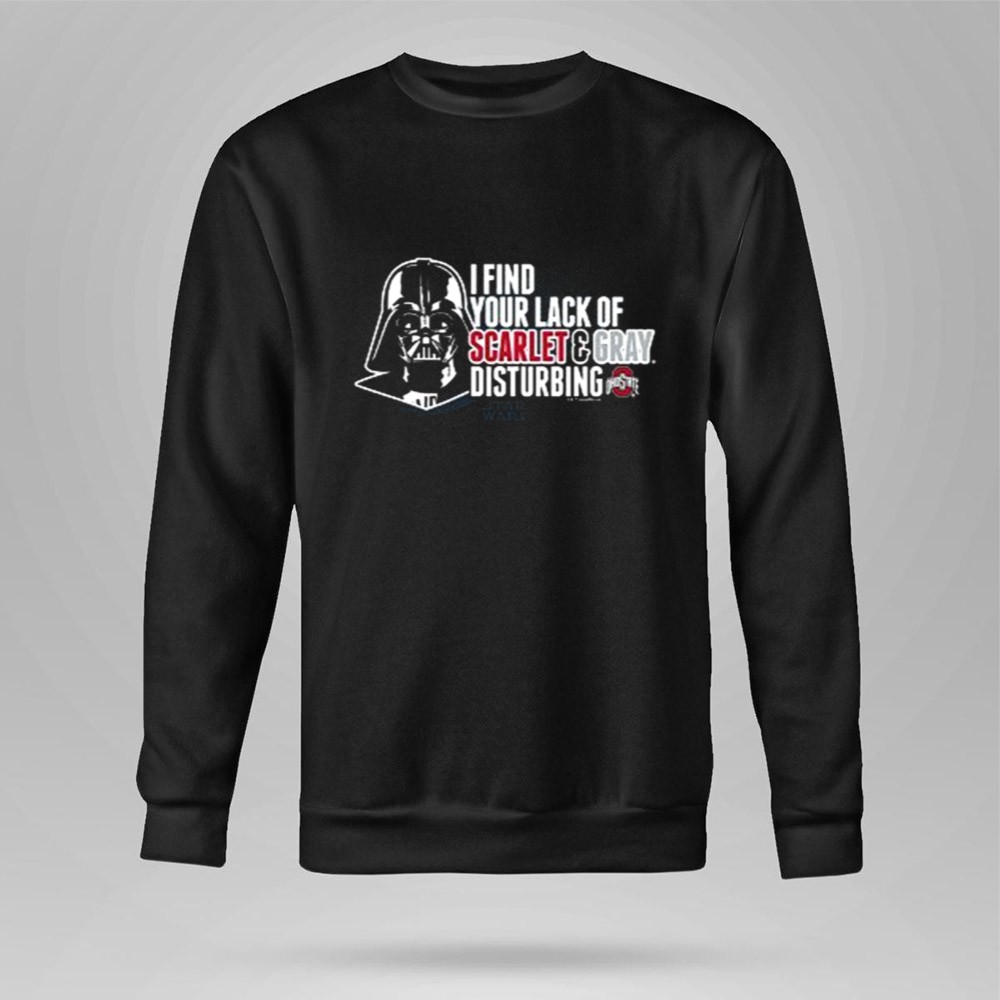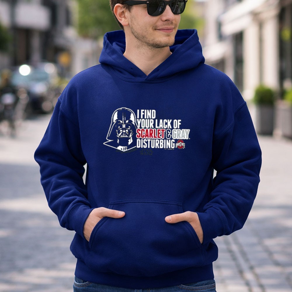 This design captures the essence of fandom by merging the fierce loyalty of Ohio State supporters with the iconic presence of Darth Vader. The bold statement, ‘I FIND YOUR LACK OF SCARLET & GRAY DISTURBING,’ playfully reflects the spirited rivalries of college football while celebrating a shared love for pop culture. It’s a tribute to the fun and camaraderie found in both the stands and in the galaxy far, far away.