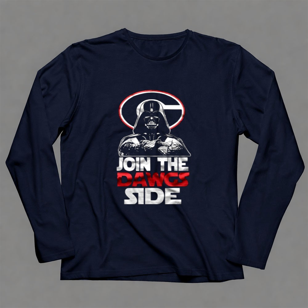 This design captures the essence of two passionate worlds, blending the fierce loyalty of Georgia Bulldogs fans with the timeless allure of Star Wars. The phrase ‘JOIN THE DAWGS SIDE’ cleverly intertwines collegiate pride with a playful nod to pop culture, inviting fans to embrace their dual allegiance. It’s a celebration of community, nostalgia, and the joy of supporting your team.