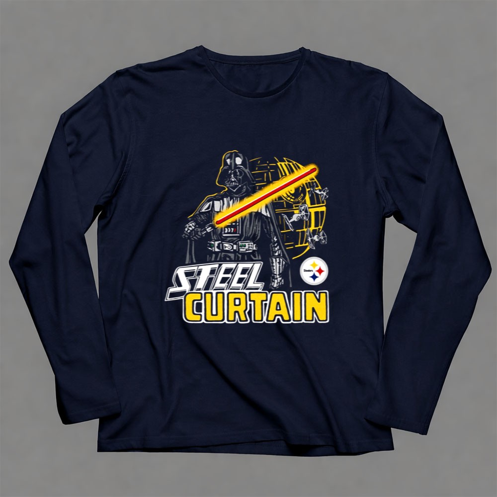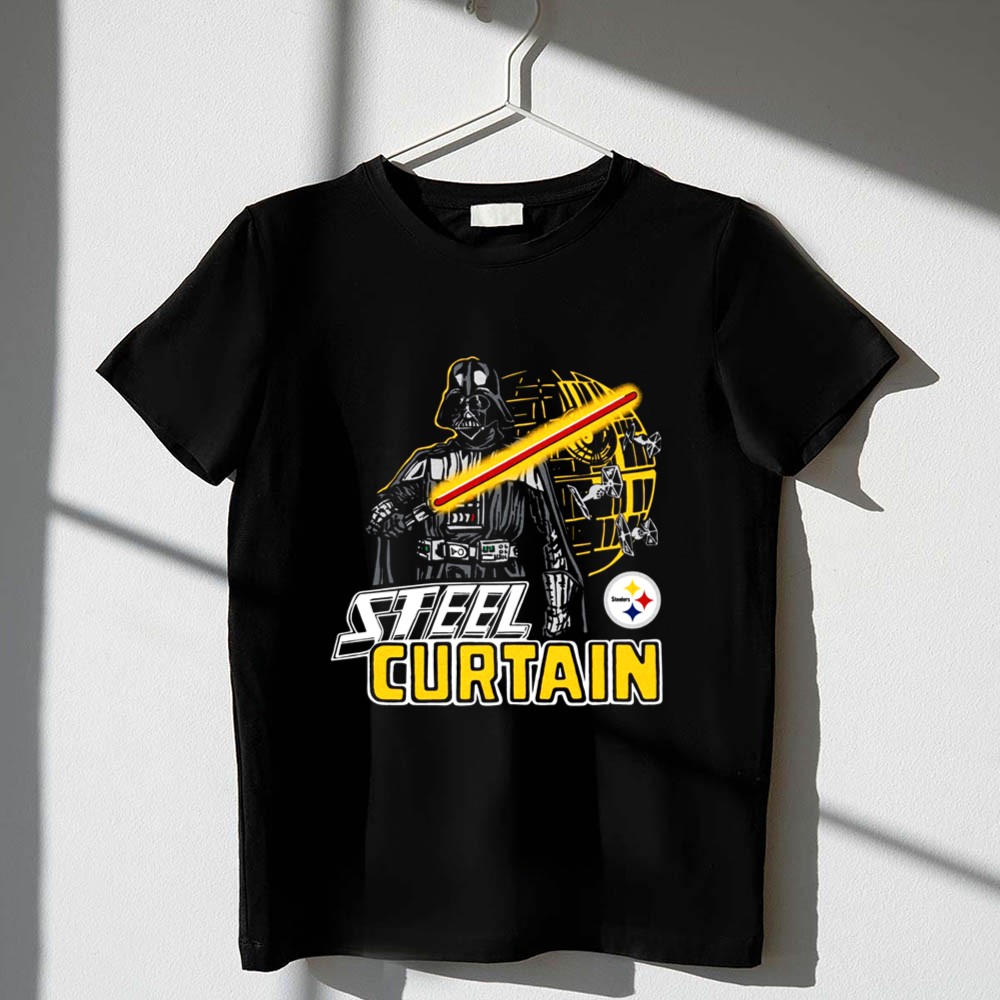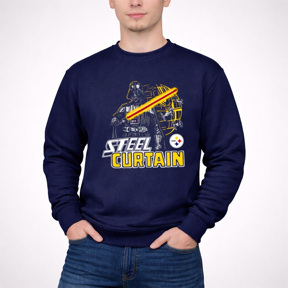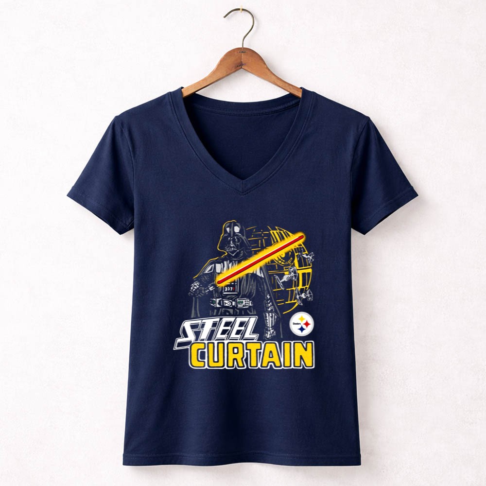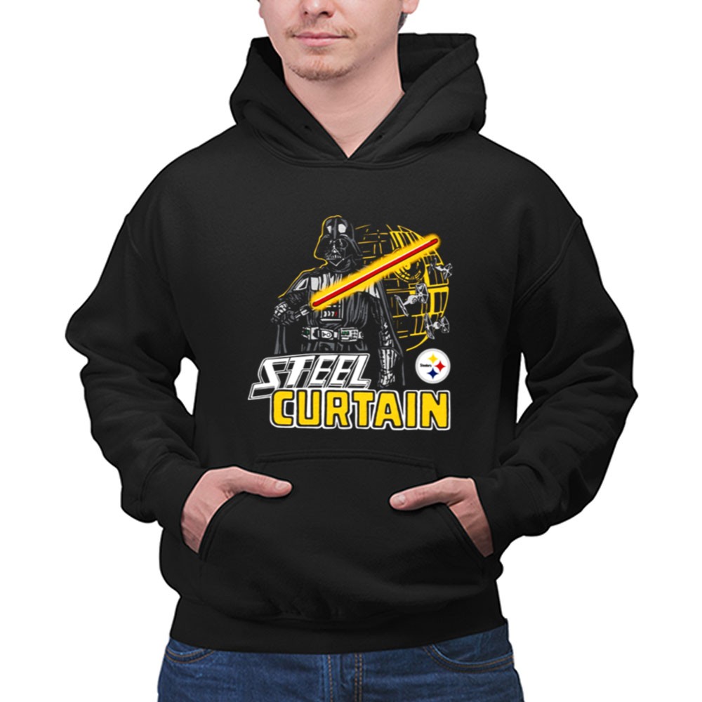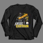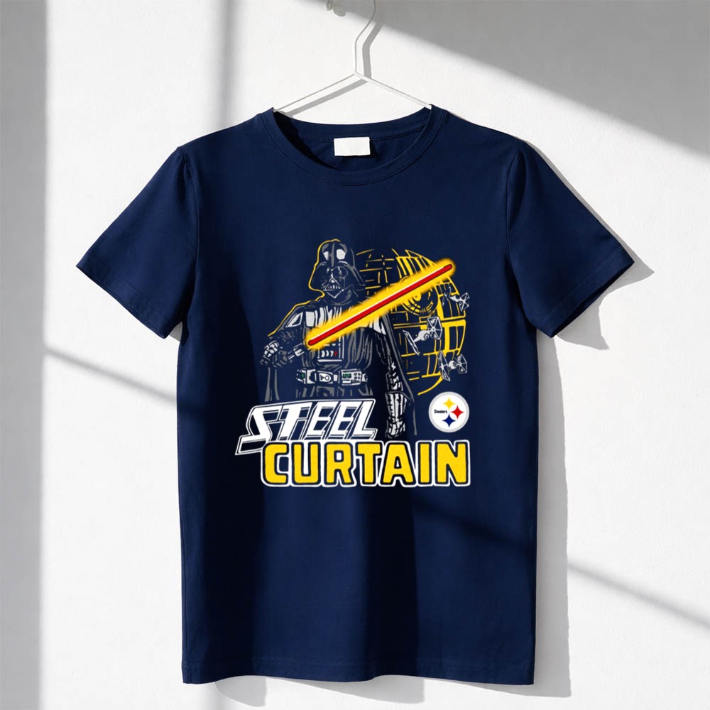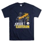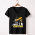 This design pays homage to the iconic Steel Curtain defense while blending the thrilling universe of Star Wars. With Darth Vader wielding a lightsaber alongside the Pittsburgh Steelers logo, it evokes a sense of nostalgia and pride for fans who cherish both the legacy of their team and the epic tales of the galaxy far, far away. The urban streetwear style and humorous elements create a fun, yet meaningful statement piece.
