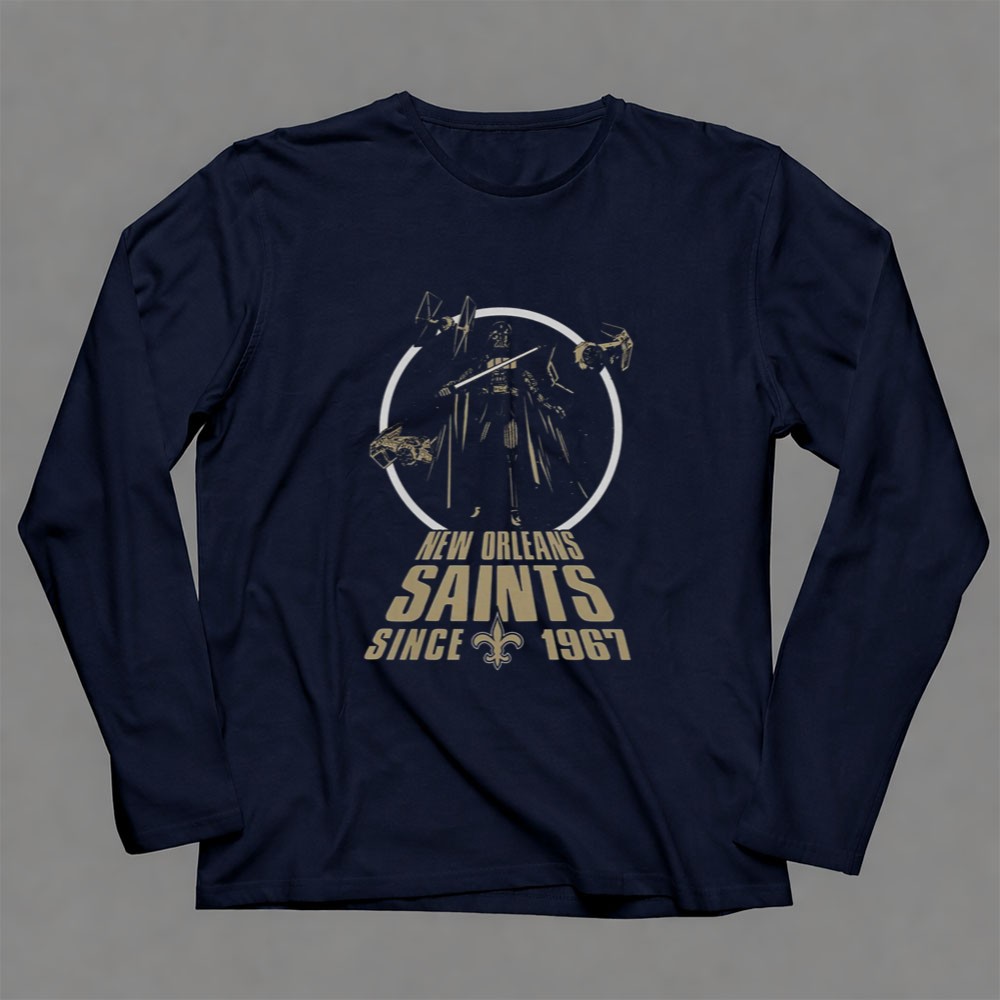 This design cleverly blends the fierce spirit of Darth Vader with the rich history of the New Orleans Saints, celebrating a unique intersection of fandoms. It captures the pride and unity felt by supporters, creating a piece that’s not just apparel but a badge of identity for those who cherish both the game and the galaxy far, far away.