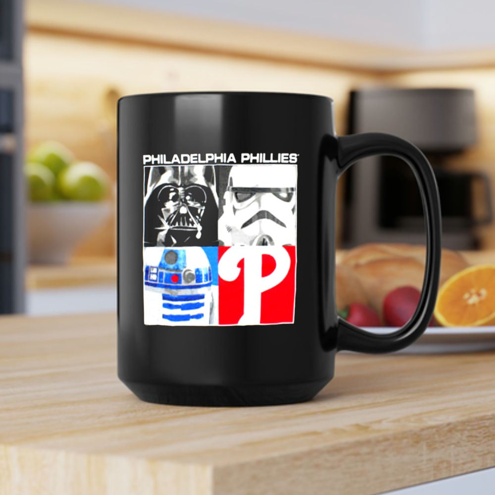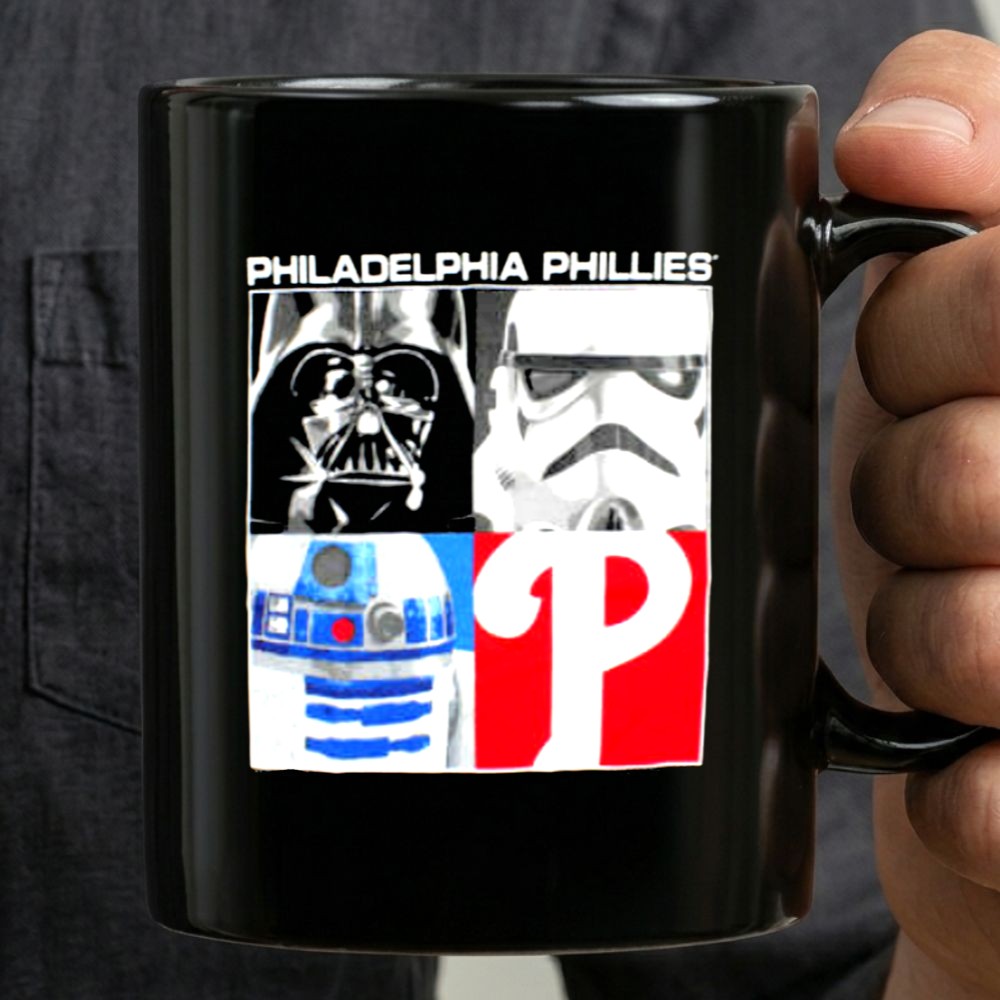 This design captures the essence of two beloved worlds—Philadelphia sports and Star Wars. Featuring the iconic Phillies logo alongside Darth Vader, Stormtrooper, and R2D2, it reflects a playful tribute to the unique blend of fandoms. Wear it with pride and celebrate the joy of being part of both communities.