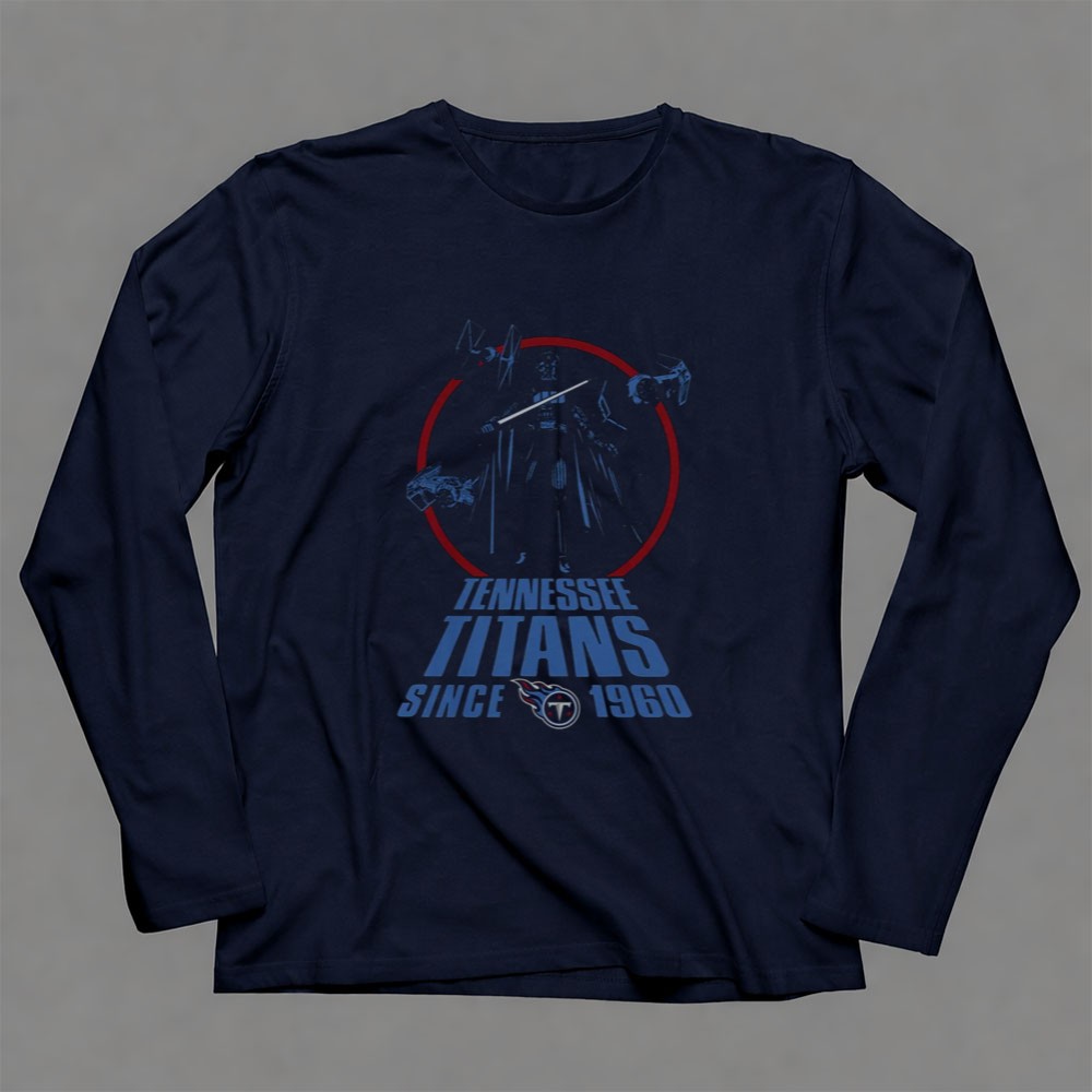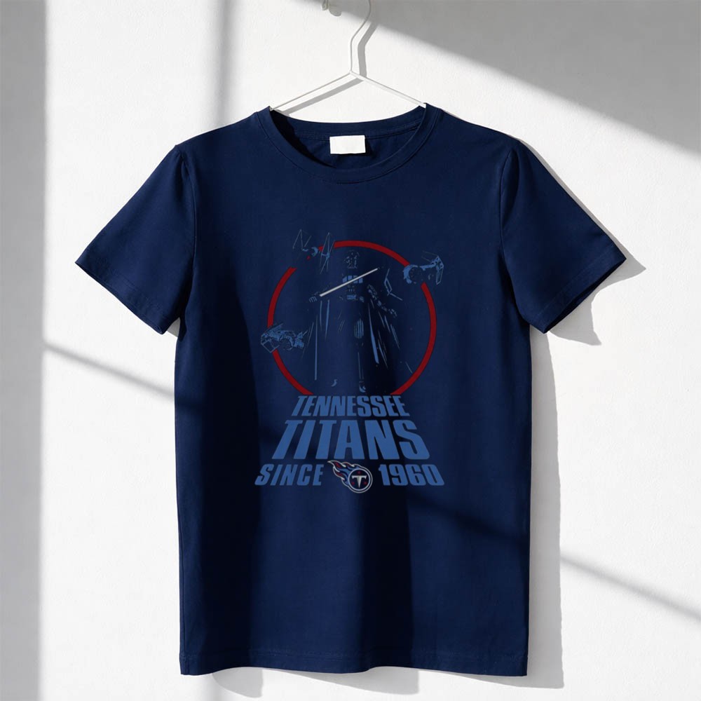 This design reflects a powerful fusion of two beloved worlds, where Tennessee Titans pride meets the iconic presence of Darth Vader. Elements of the Tie Fighter weave through the bold graphics, creating a tribute that resonates with nostalgia and passion. It’s more than just a shirt; it’s a celebration of the legacies that inspire fans to come together.