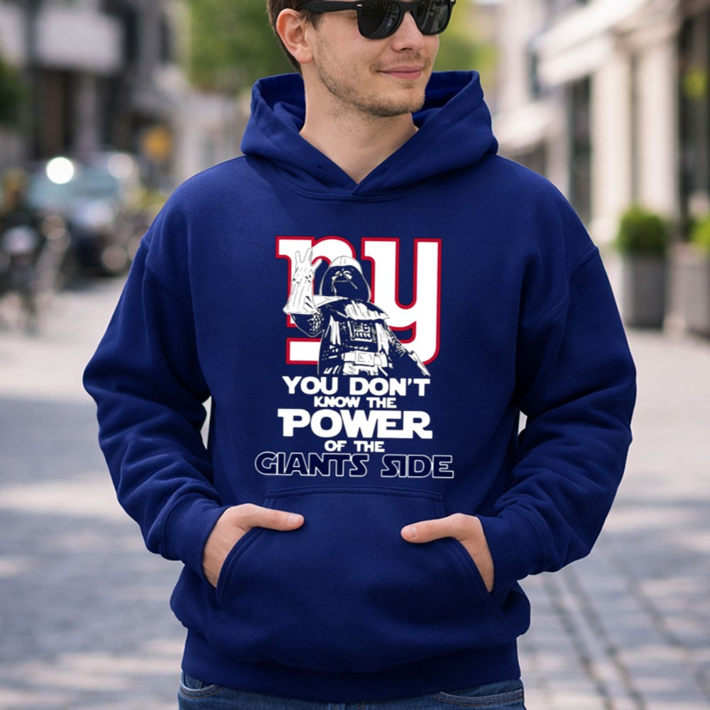 New York Giants fandom, Darth Vader sports mashup, power of the Giants, NY football pride, Star Wars humor, premium quality t-shirt, game day gear, NFL fan apparel