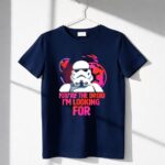 This design captures the spirit of fun and nostalgia, merging a classic Star Wars quote with a playful visual of a Stormtrooper. The vibrant colors and bold graphic style invite wearers to celebrate their love for the sci-fi universe, bringing joy and laughter to every casual outing.