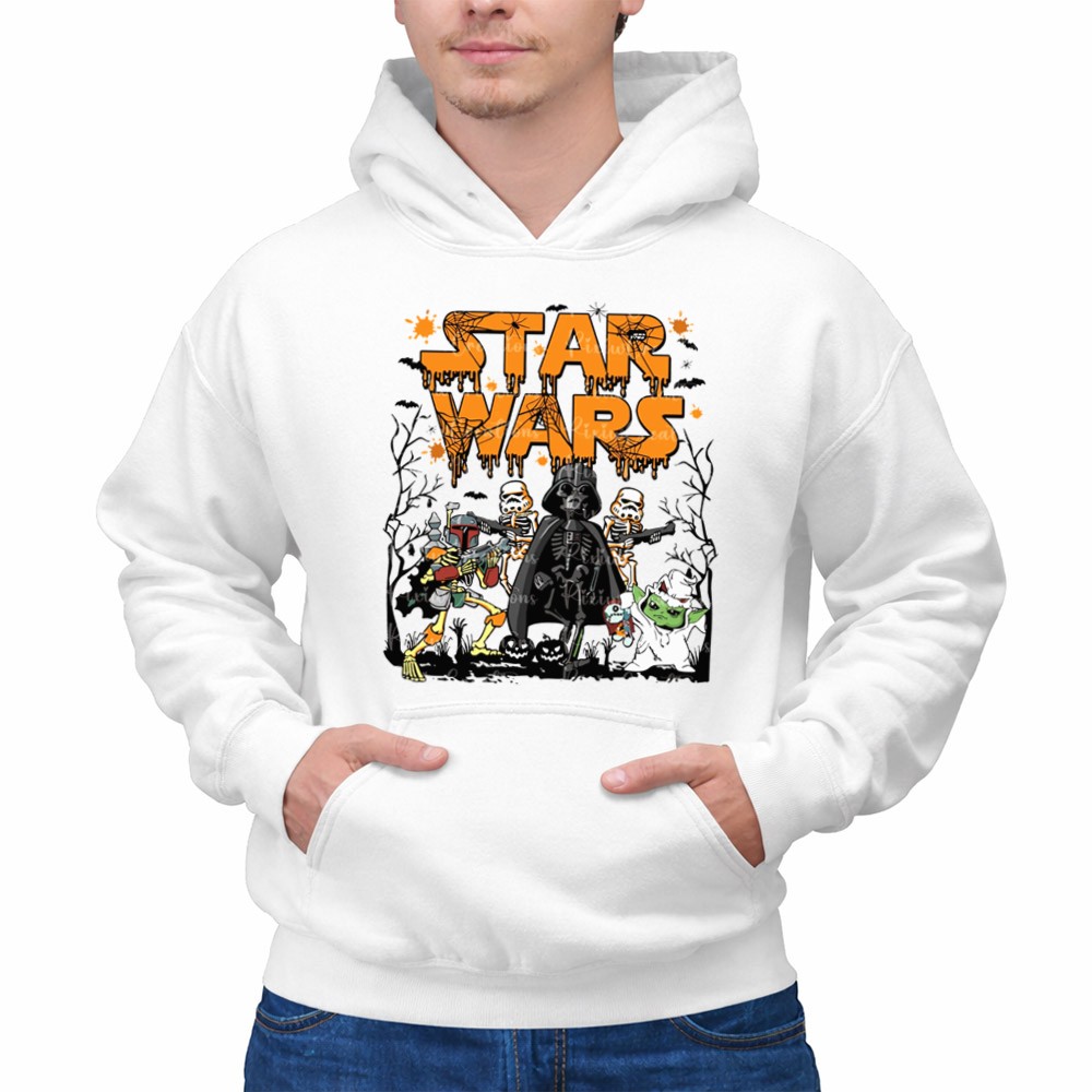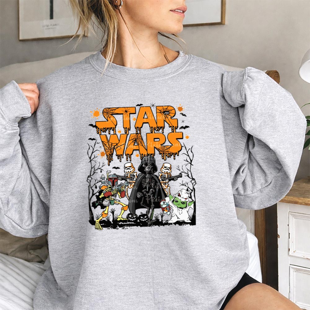 This design captures the playful essence of Halloween by bringing together beloved Star Wars characters in a chibi style. The vibrant colors and dripping orange text evoke the whimsical spirit of the season, inviting fans to celebrate their favorite galaxy far, far away while indulging in spooky fun. It’s a reminder that even in the darkest corners of the universe, there’s room for laughter and joy.