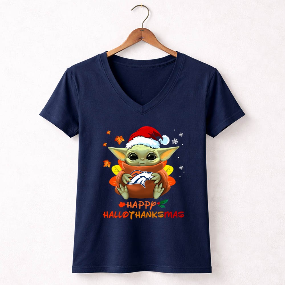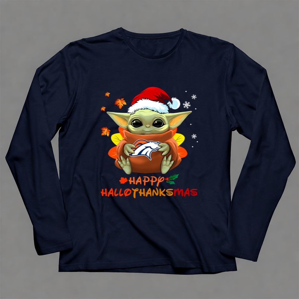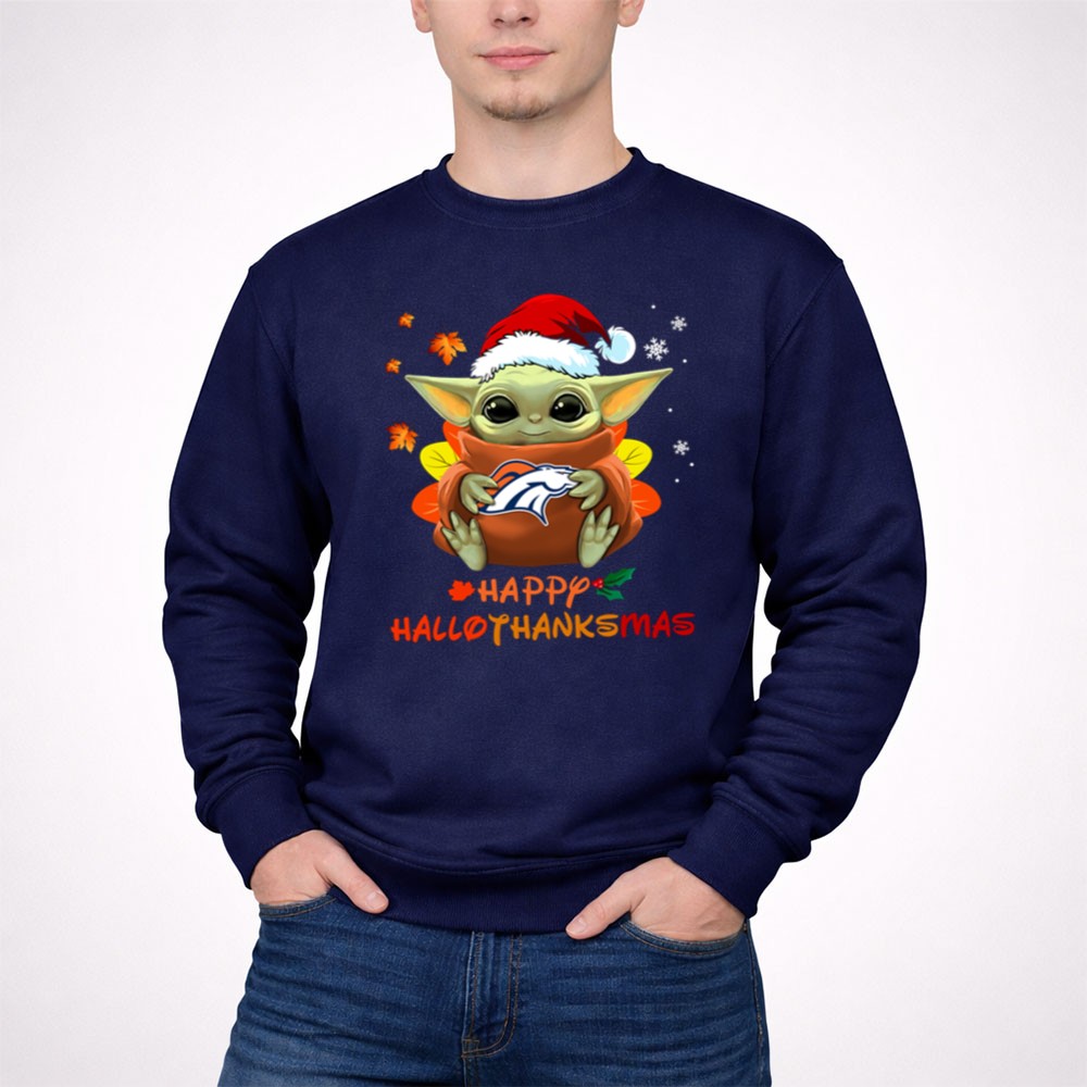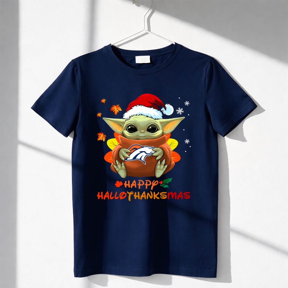 Denver Broncos Baby Yoda Happy Hallothanksmas Shirt