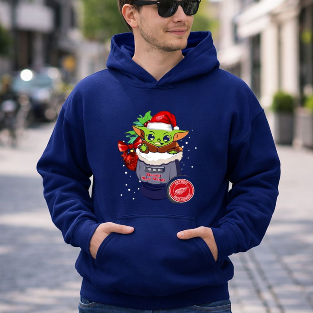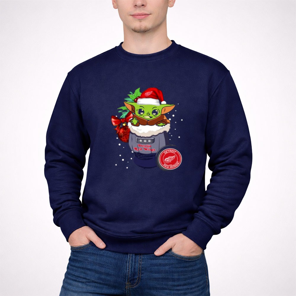 This playful design captures the essence of holiday joy by merging the iconic Baby Yoda with the Detroit Red Wings logo. It symbolizes the warmth of community and shared passions, making it a delightful addition to your festive wardrobe. With its whimsical cartoon style, this shirt brings a lighthearted spirit to game days and holiday gatherings alike.