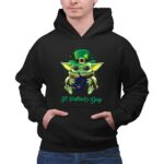 This charming design captures the essence of St. Patrick’s Day with Baby Yoda wearing a festive green hat, holding the iconic Detroit Tigers logo. It beautifully intertwines the joy of baseball with the spirit of luck and celebration, making it a delightful addition to any fan’s wardrobe. Whether at a game or a family gathering, it embodies the magic of fandom and holiday cheer.