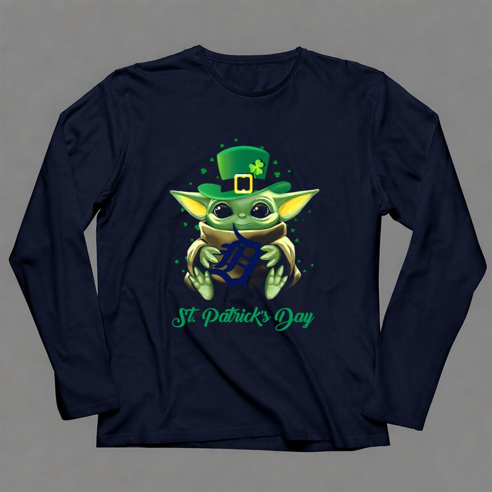 Detroit Tigers apparel, Baby Yoda merchandise, St. Patrick's Day t-shirt, MLB fan gear, baseball holiday spirit, lucky charm fashion, pop culture sports mashup, fun fan gifts