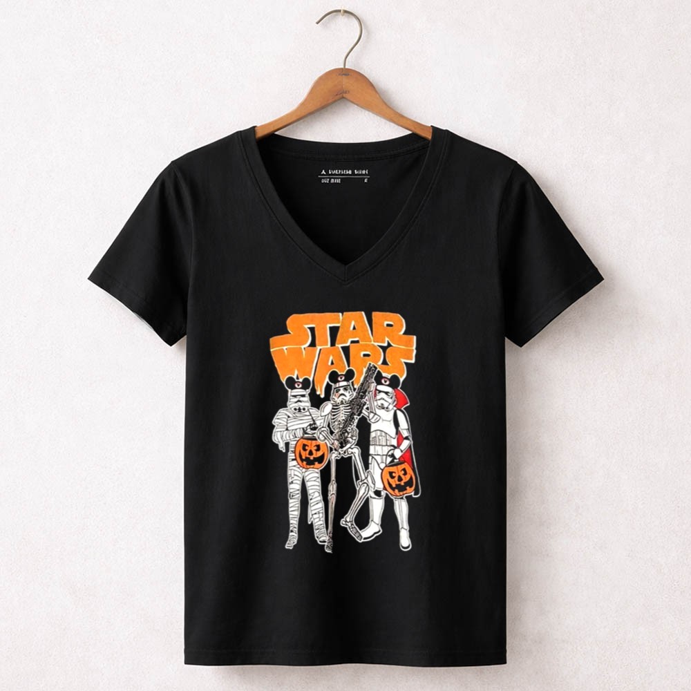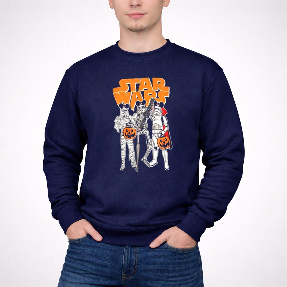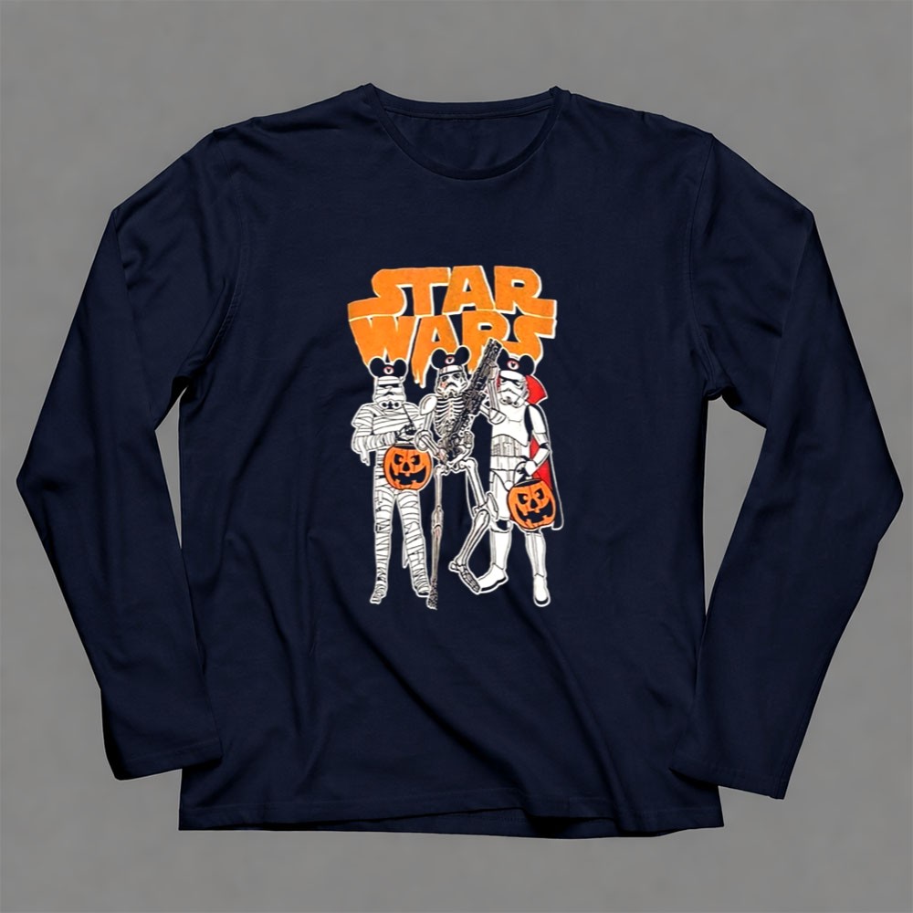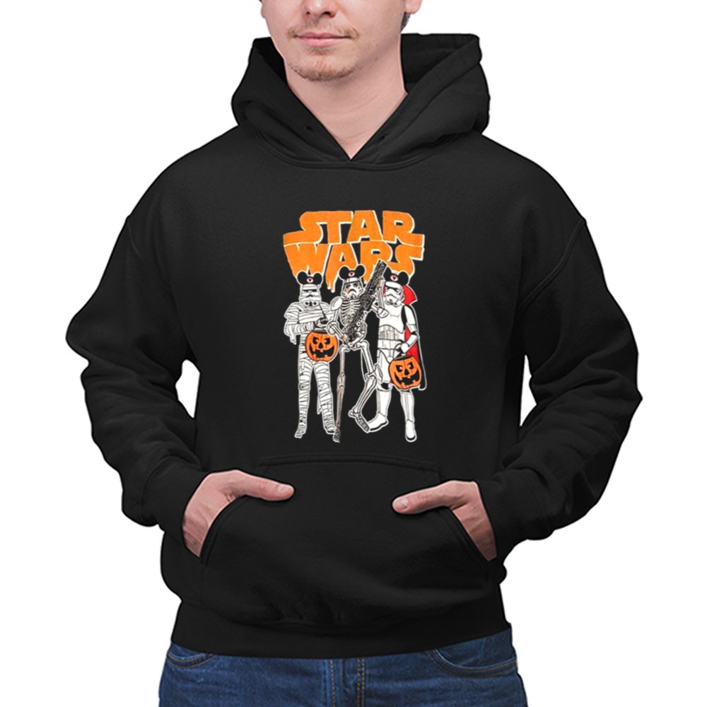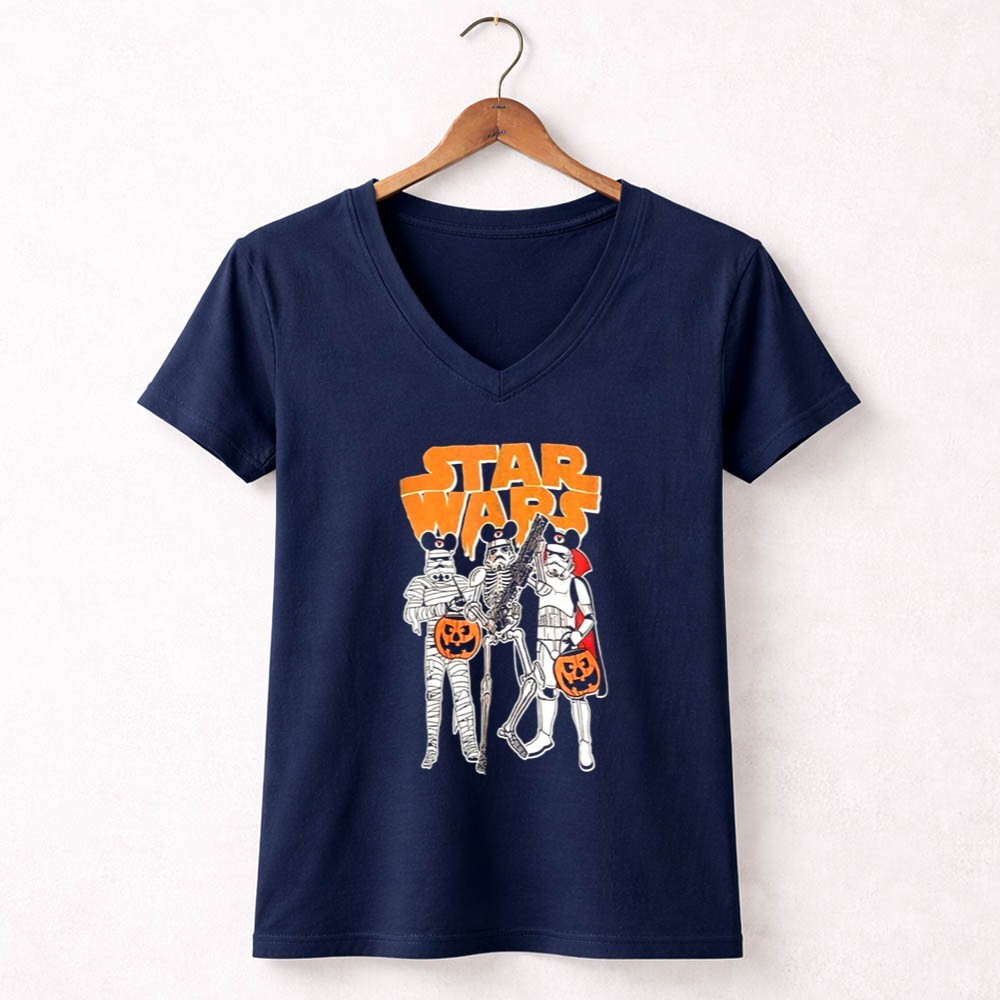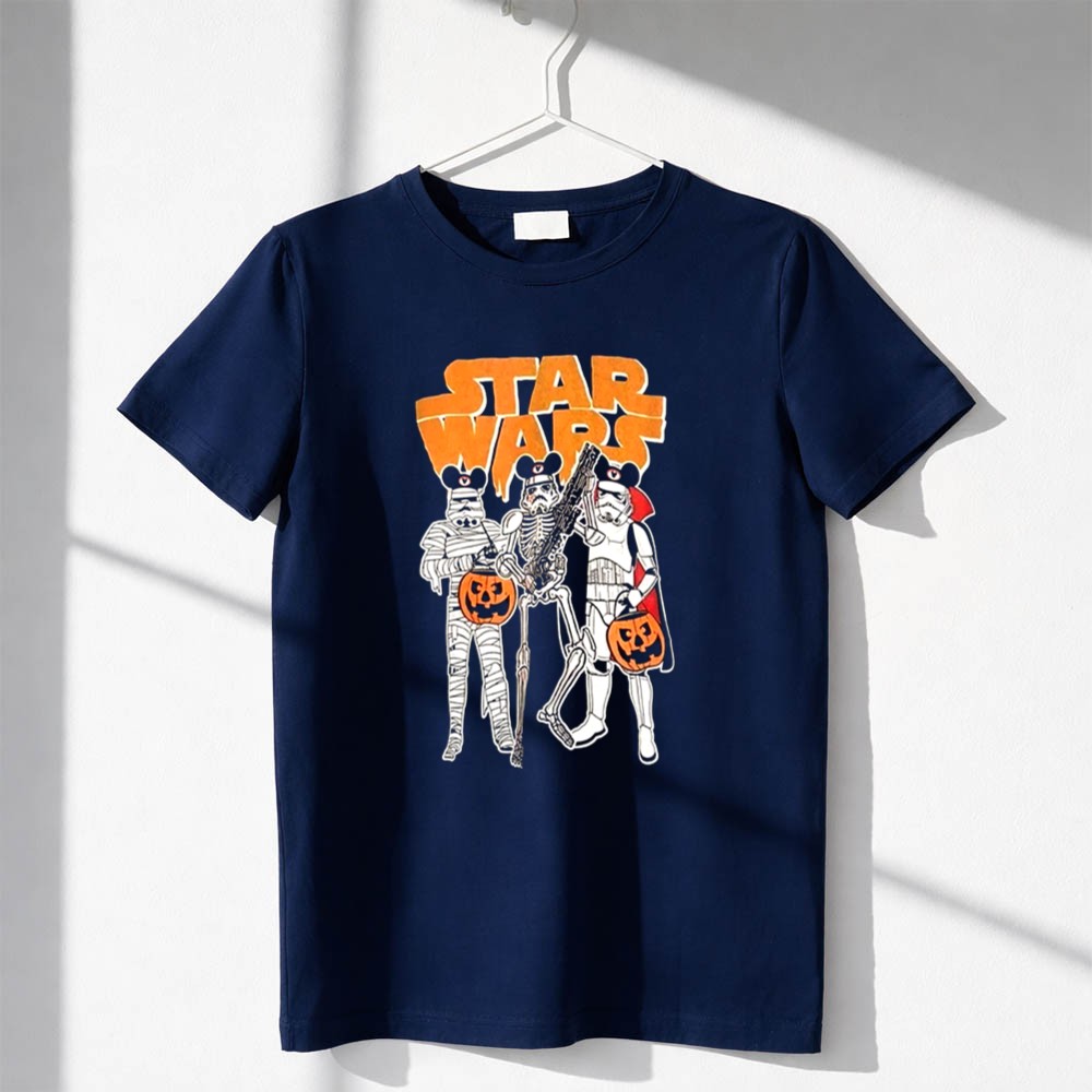 This enchanting design captures the playful essence of Halloween through the lens of a galaxy far, far away. Featuring a classic Stormtrooper alongside a mummy and skeleton, it invites fans to celebrate the spookiness of the season with joy and imagination. The vibrant colors and cartoonish style evoke a sense of adventure, making it a delightful addition to any Halloween gathering.