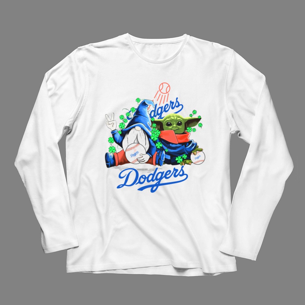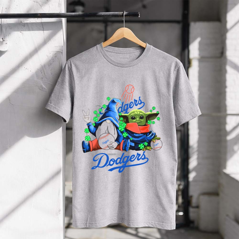 Los Angeles Dodgers apparel, Baby Yoda merch, St. Patrick's Day t-shirt, baseball gnomes design, LA sports fans gift, fun baseball t-shirt, Dodgers shamrock celebration, unique sports-themed gifts