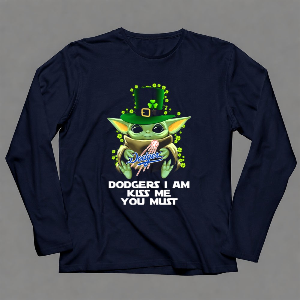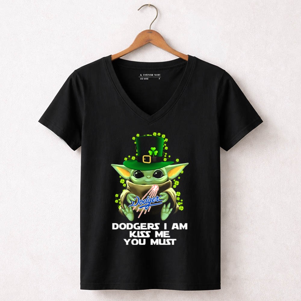 Los Angeles Dodgers, Baby Yoda fan gear, St. Patrick's Day shirt, playful Dodgers apparel, Star Wars mashup, game day outfit, lucky charm tee, Dodgers pride