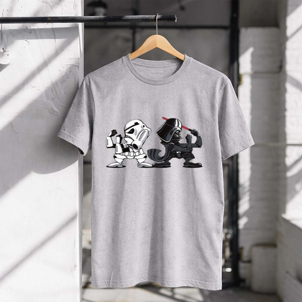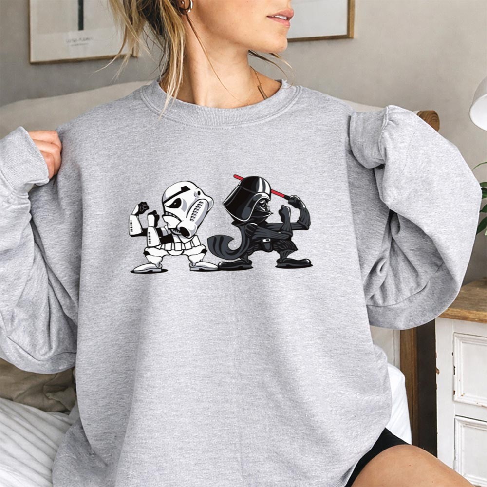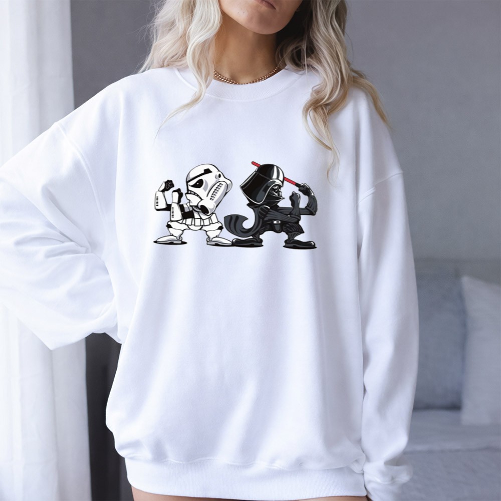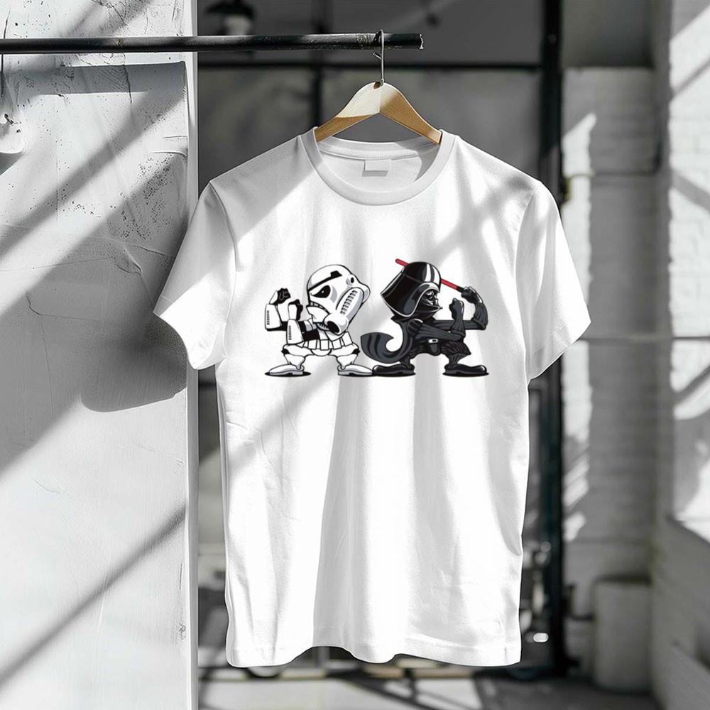 This design captures an epic showdown between beloved characters, merging the fierce loyalty of Notre Dame Fighting Irish fans with the timeless allure of Star Wars. With its comic mashup style and vibrant colors, it speaks to the shared passion of sports and geek culture, inviting fans to celebrate their identities together. It’s a tribute to the battles fought both on the field and in the galaxy far, far away.