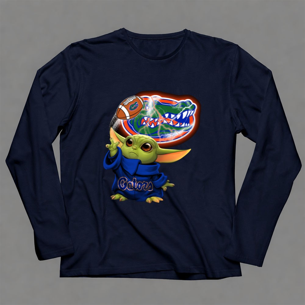 This charming design features Baby Yoda donned in a blue Gators hoodie, holding a football, encapsulating the joy of combining sports enthusiasm with pop culture. It celebrates the playful side of fandom, inviting young sports enthusiasts to embrace both their love for college football and the adorable character they adore. It’s a heartwarming reminder that fandom can be fun and delightful.