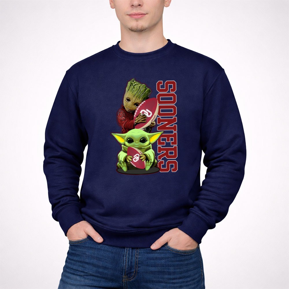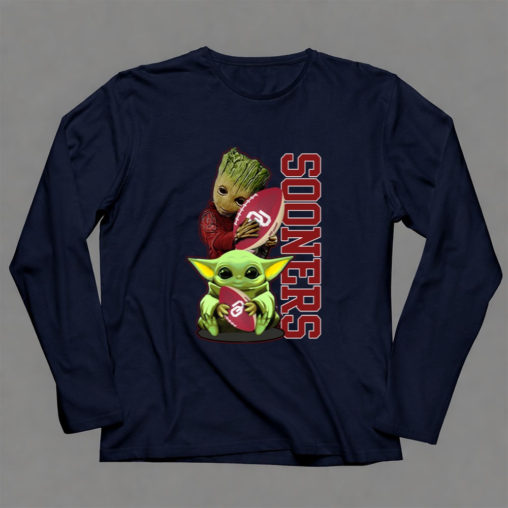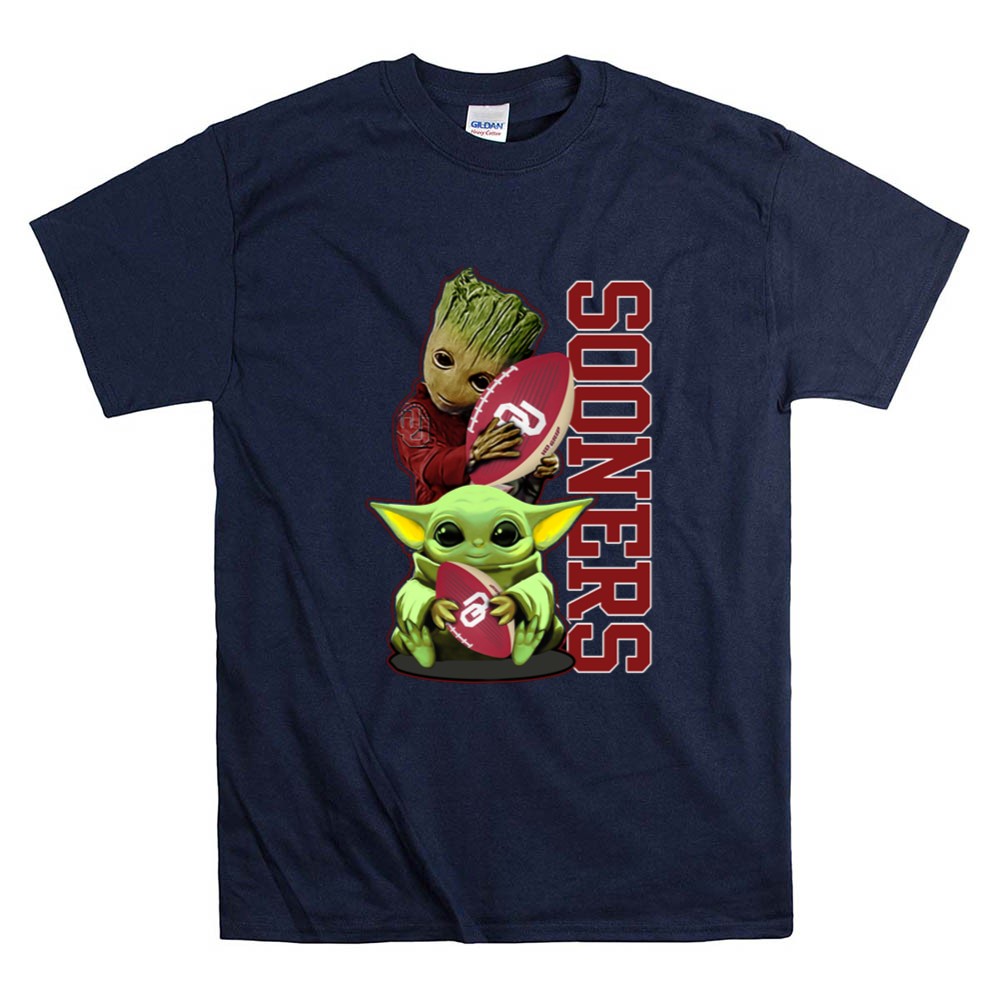 This design captures the essence of fandom by merging beloved characters Groot and Baby Yoda with the spirited energy of Oklahoma Sooners football. It’s a playful nod to the joy of cheering for your team, evoking fond memories and a sense of community among fans. The vibrant colors and cartoon mashup create a fun atmosphere that brings fans together in celebration.