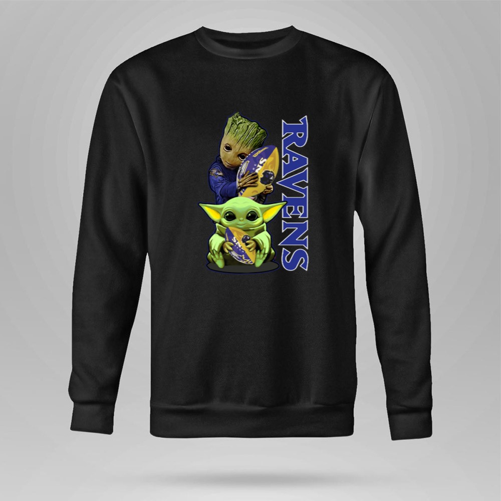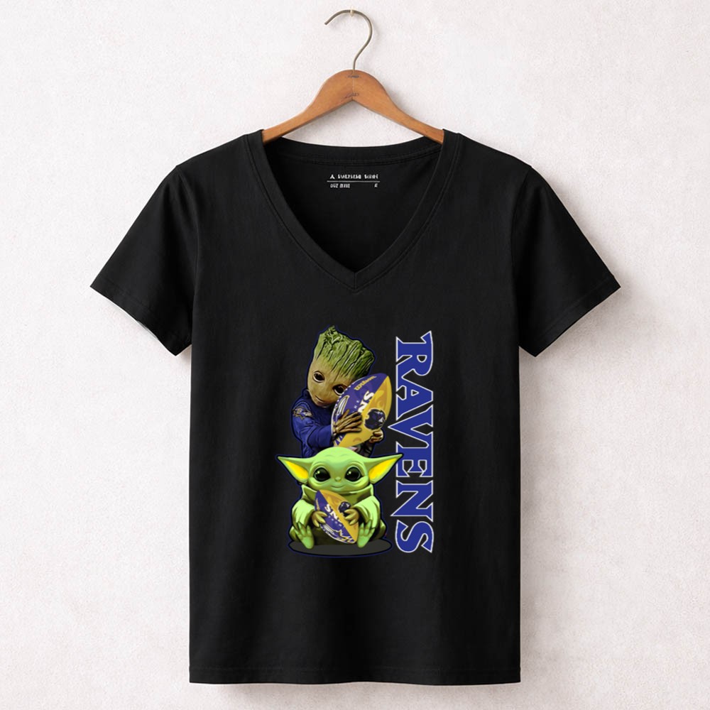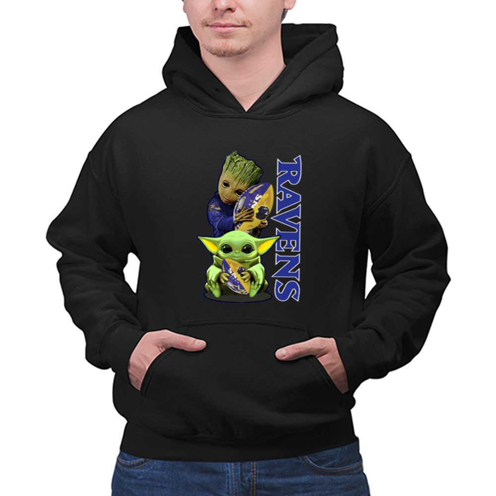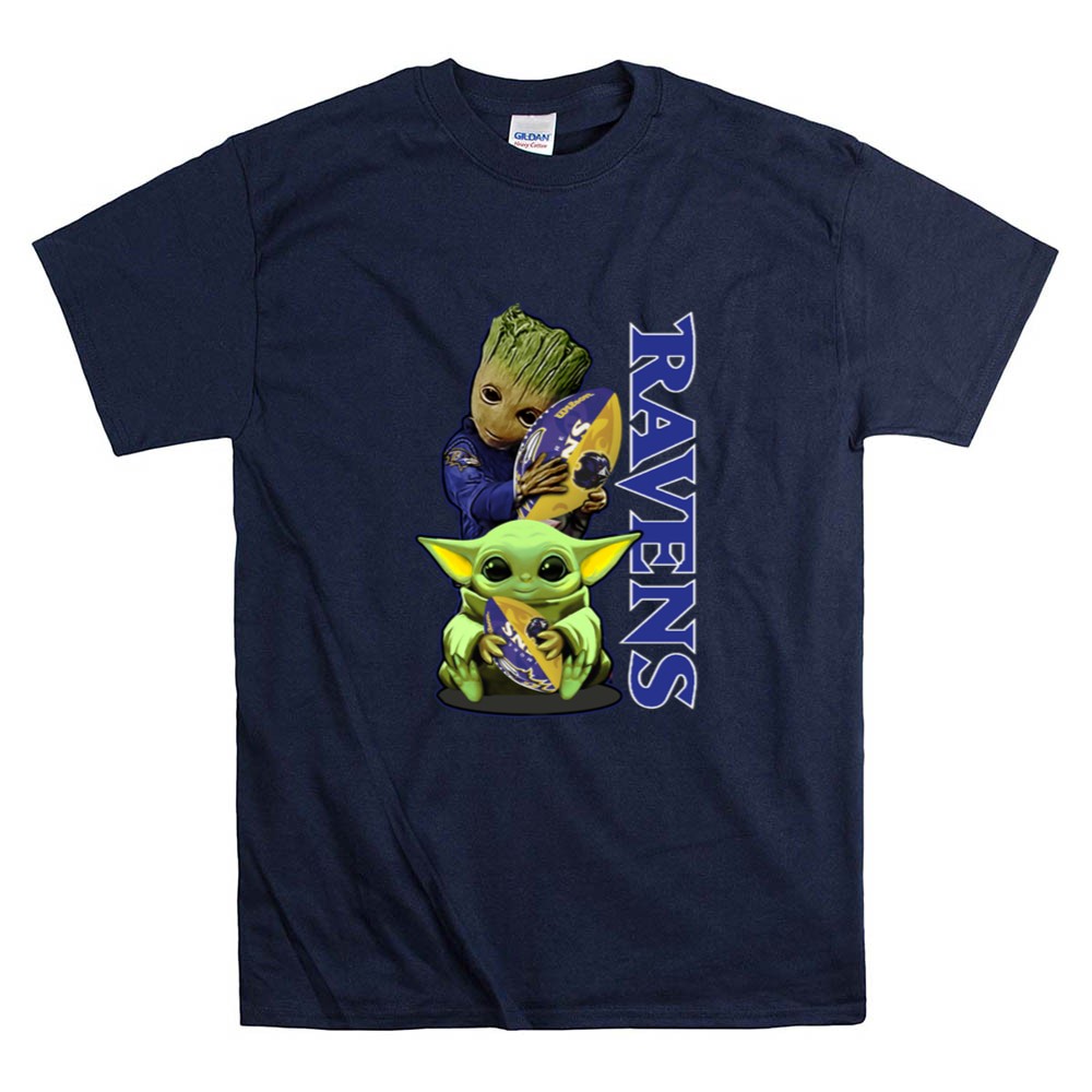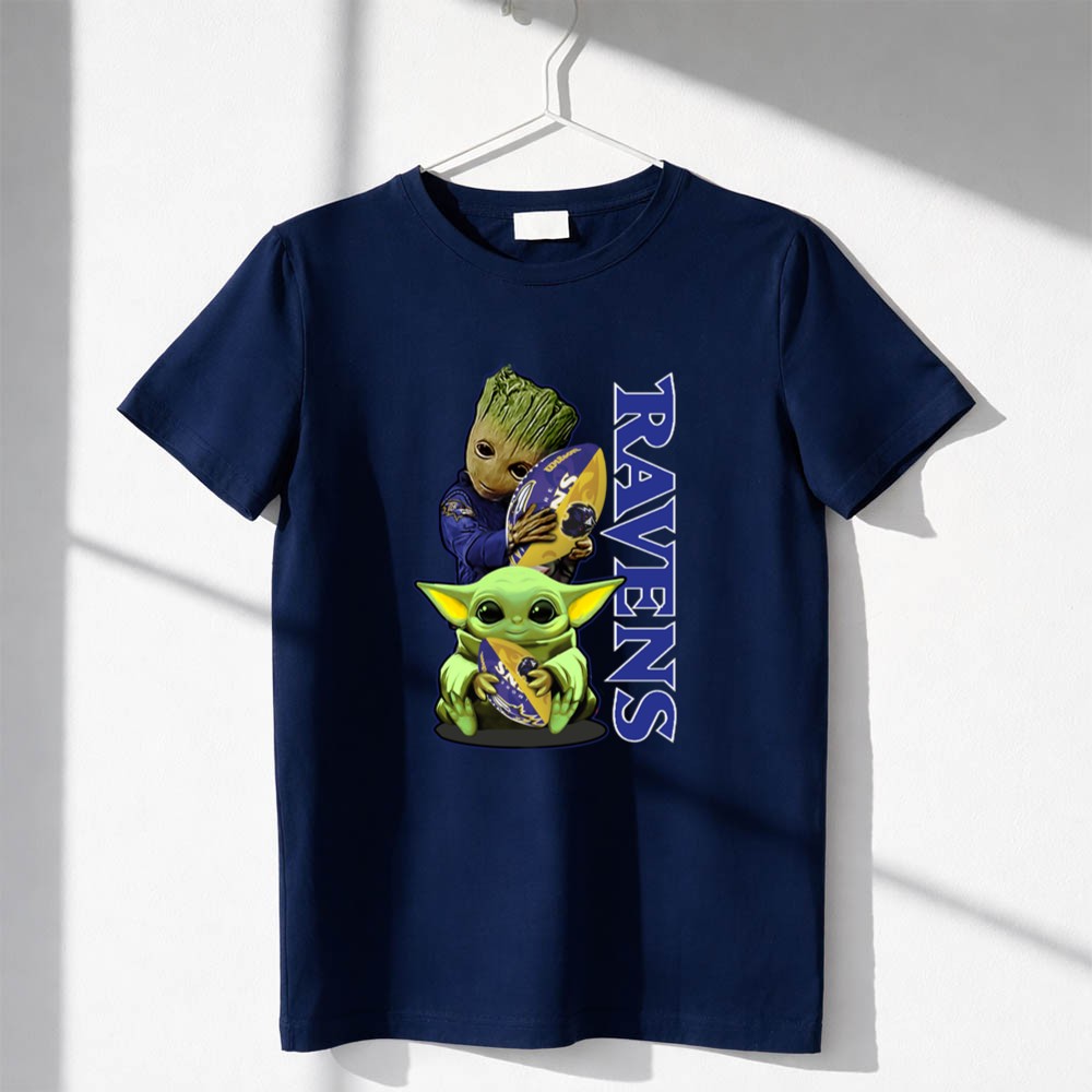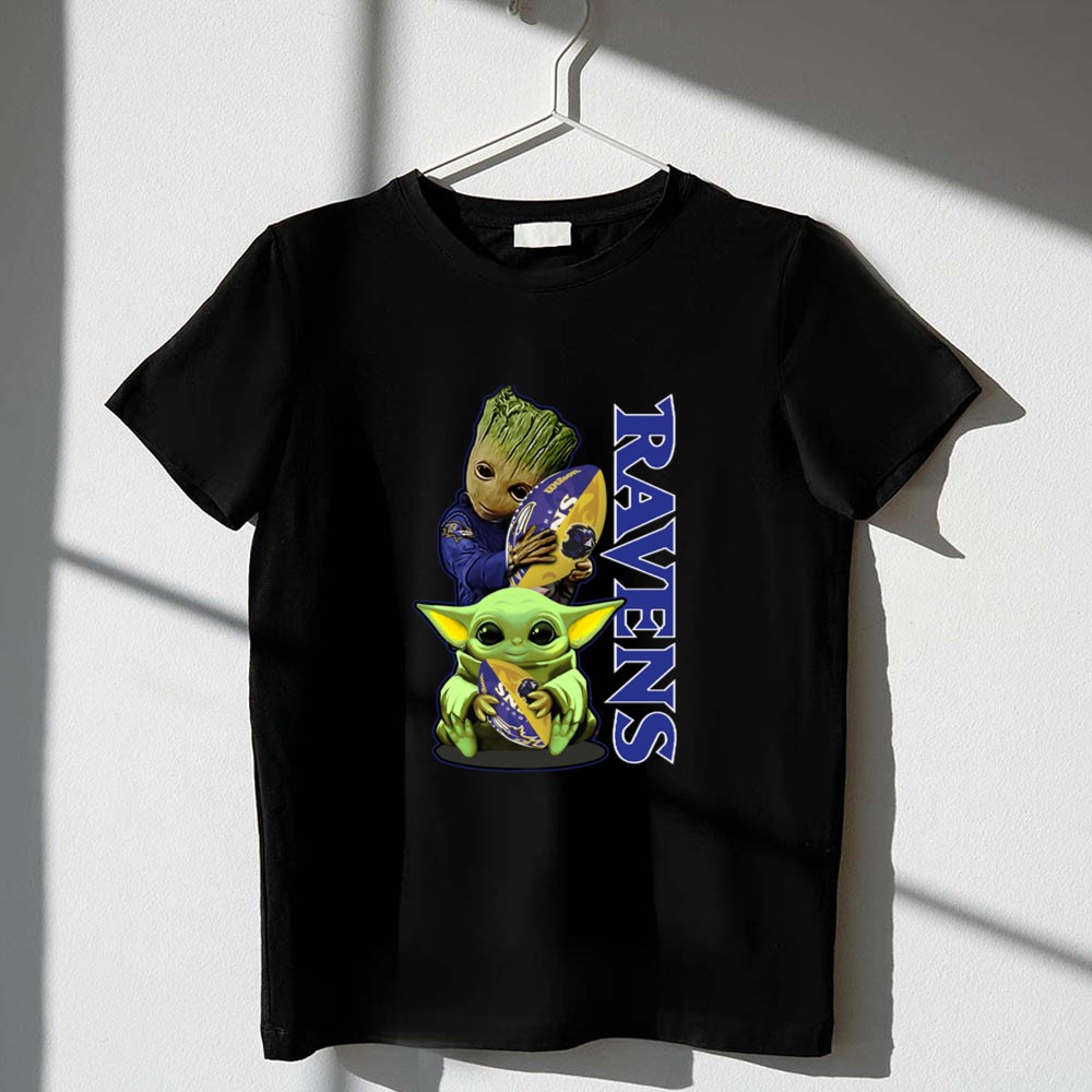 Grzd Baltimore Ravens Baby Yoda and Groot Ravens Football Shirt
