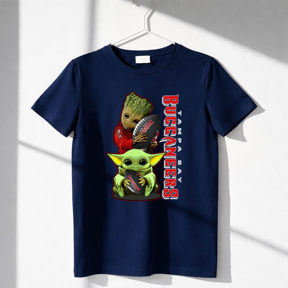 This design captures the essence of camaraderie among Tampa Bay Buccaneers fans, bringing together two beloved characters, Groot and Baby Yoda, in a delightful fusion. The vibrant colors and playful graphic reflect the joy of game day, creating a whimsical tribute to fandom that resonates with both nostalgia and excitement.