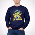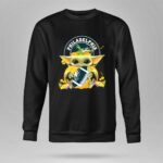 This enchanting design features Baby Yoda, a beloved character from the Star Wars universe, joyfully holding a Halloween pumpkin alongside a Philadelphia Eagles football. It celebrates the joy of fandom and the spirit of Halloween, merging two worlds that inspire nostalgia and city pride. The playful character design adds a whimsical touch, making it a delightful choice for fans dedicated to both football and Halloween festivities.