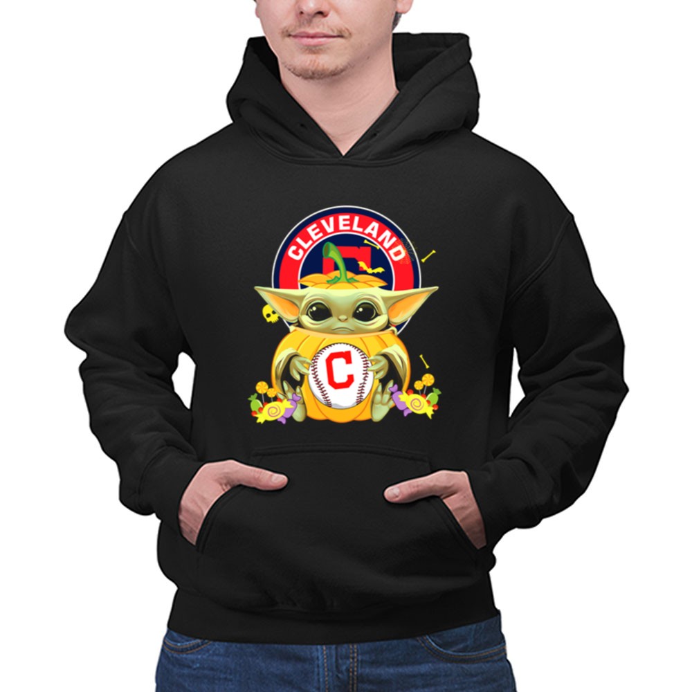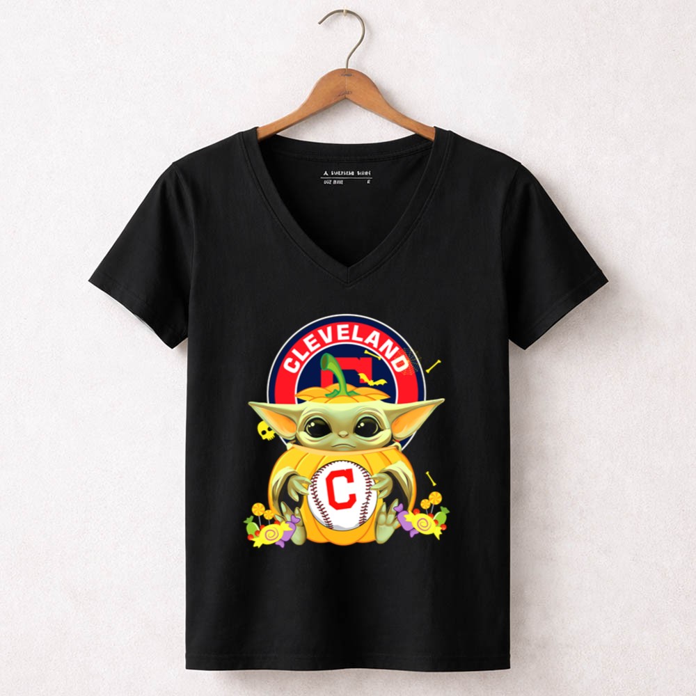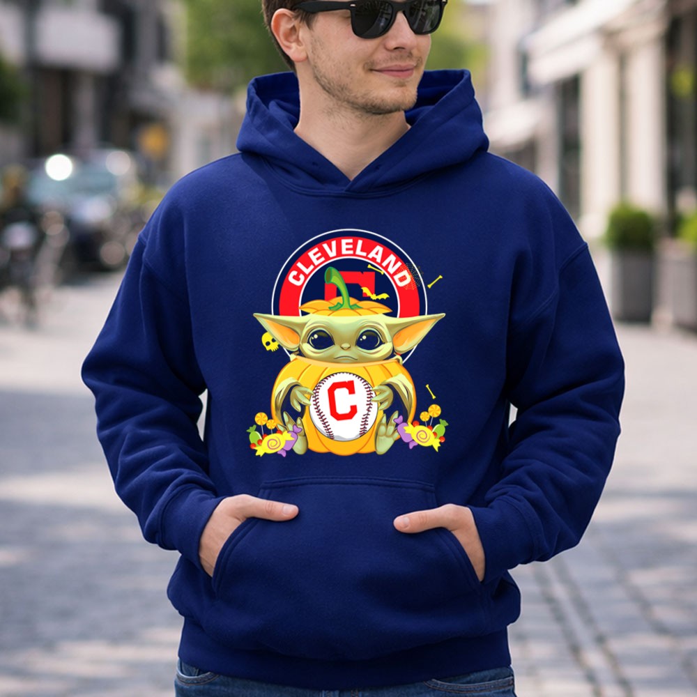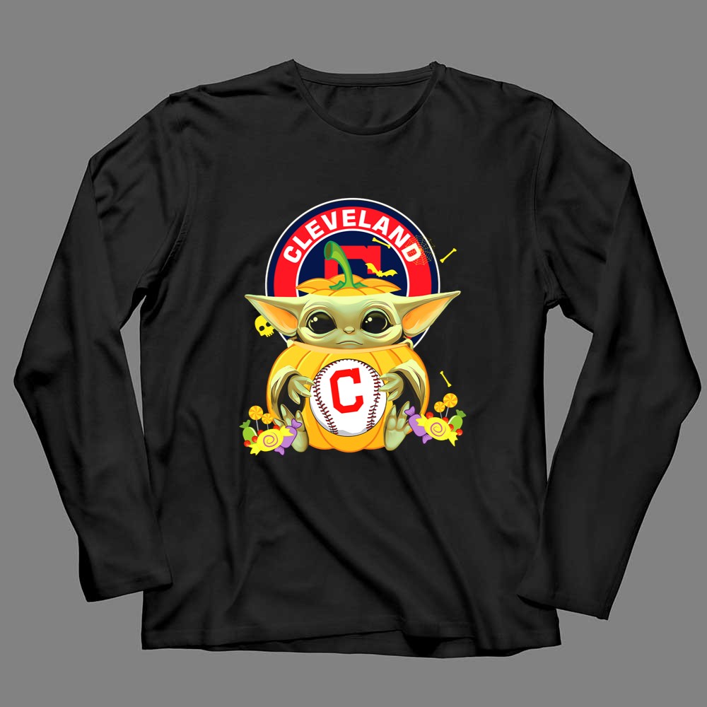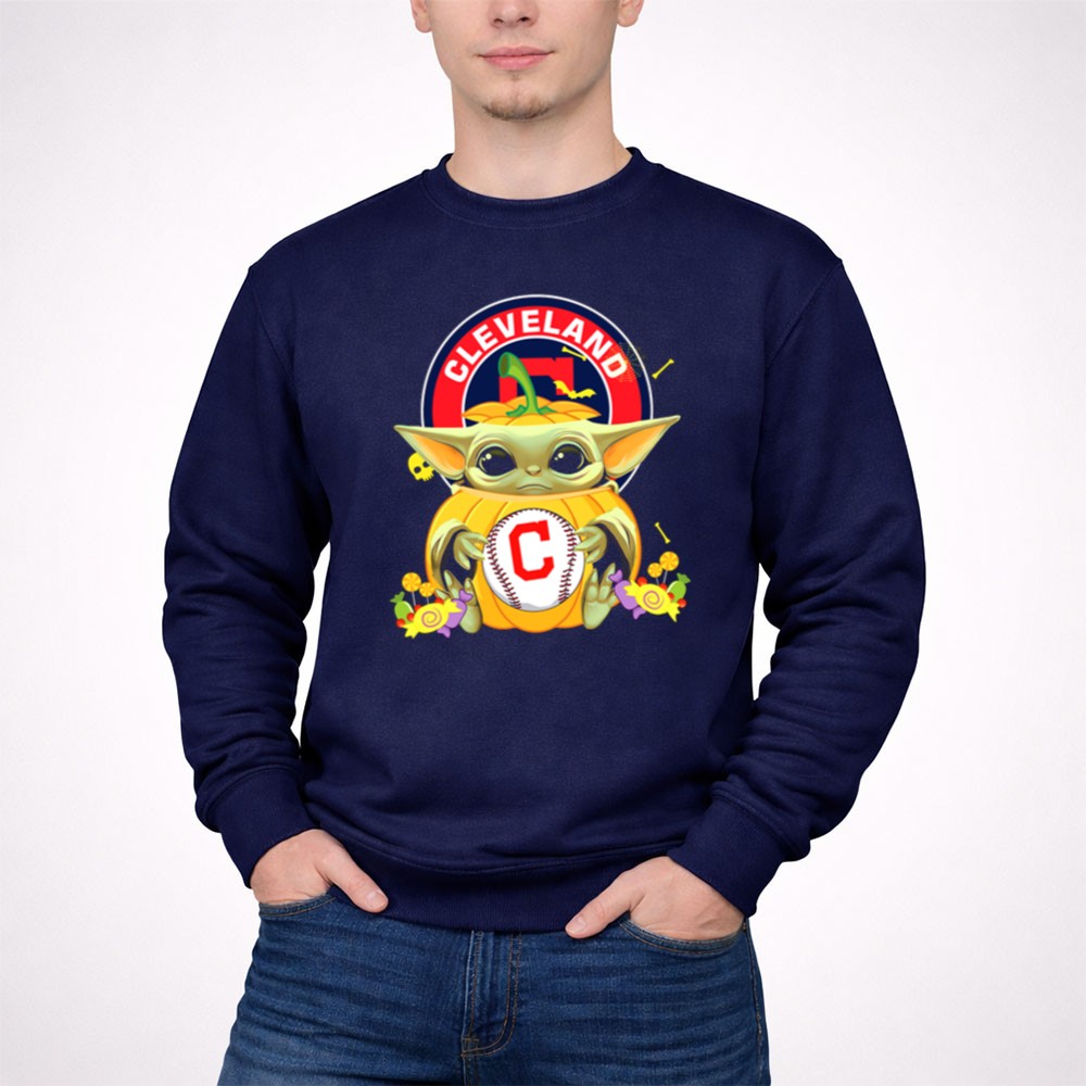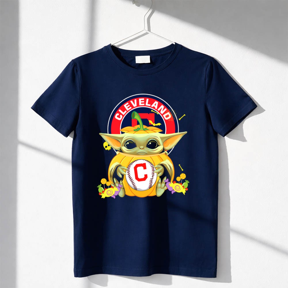 This enchanting design features Baby Yoda joyfully holding a pumpkin and baseball, symbolizing the playful spirit of Halloween while honoring the Cleveland Guardians. Surrounded by vibrant festive decorations, it captures the joy of being a fan in a fun and unique way, making it a delightful addition to any Guardians’ supporter’s wardrobe.
