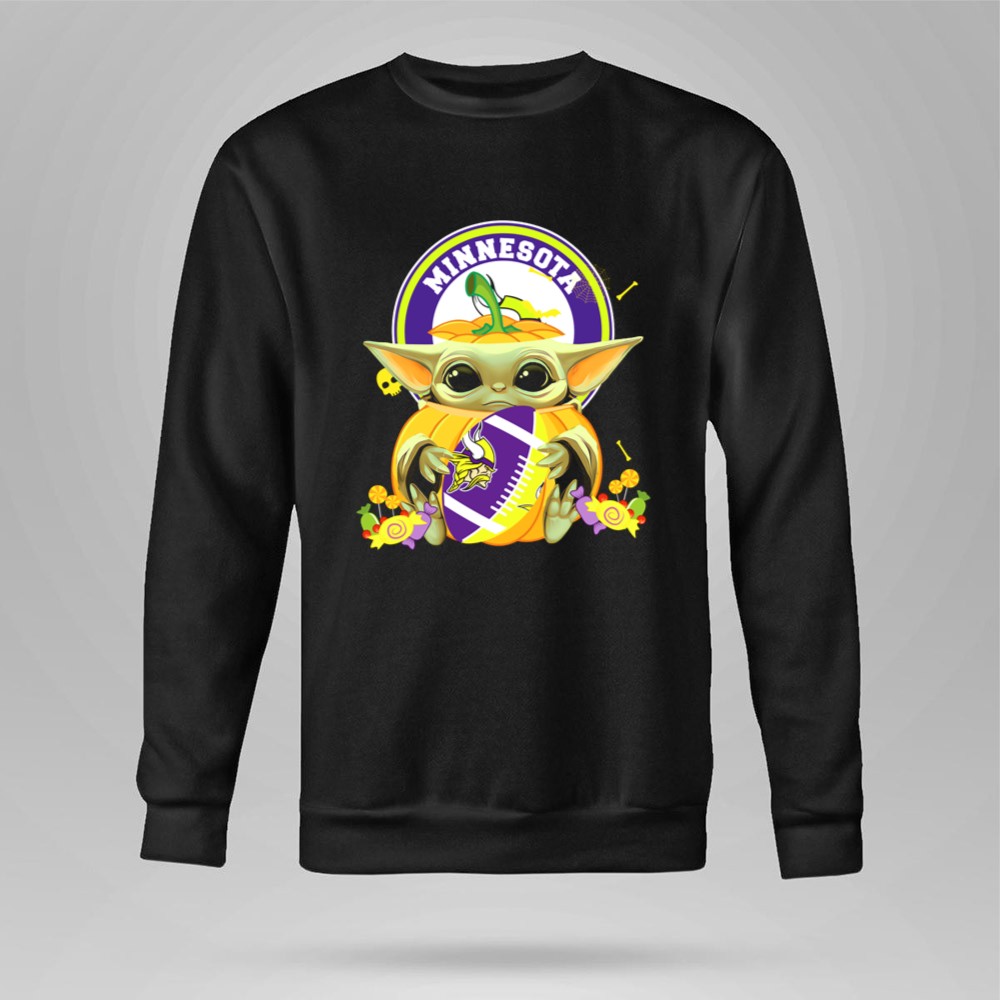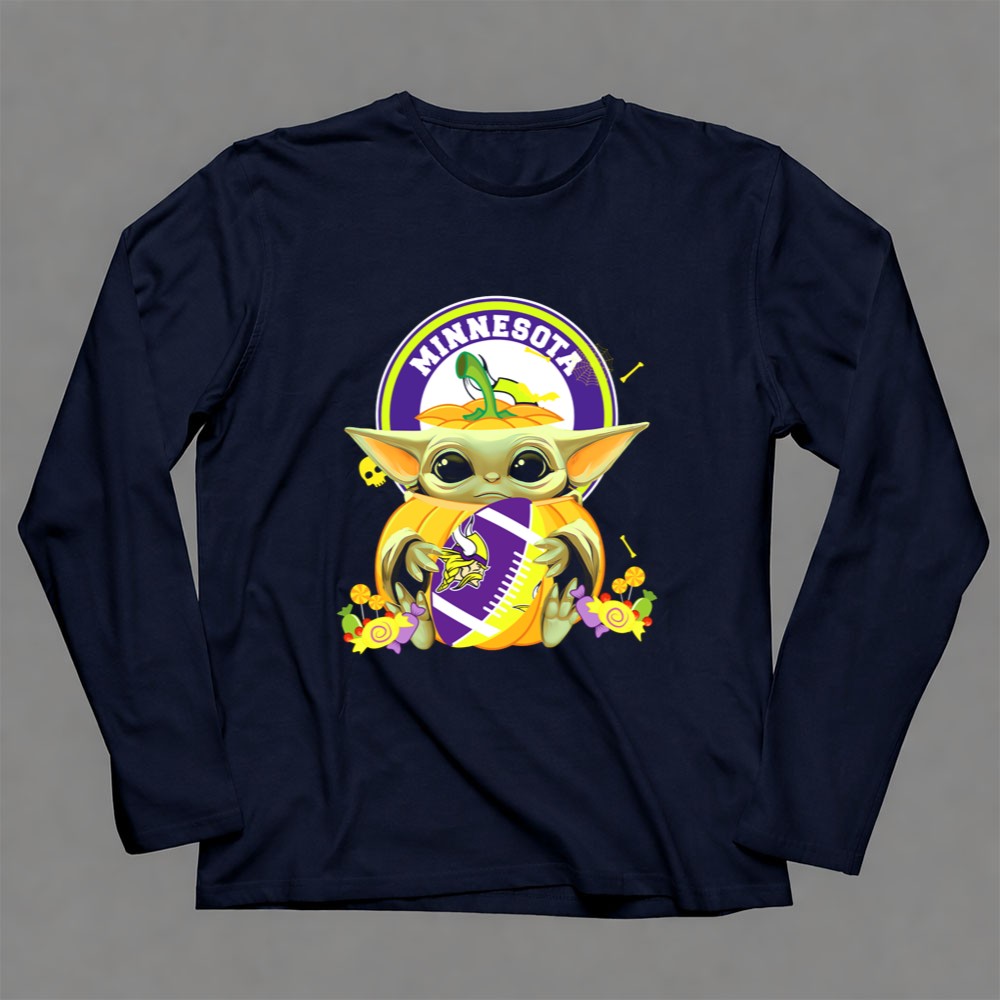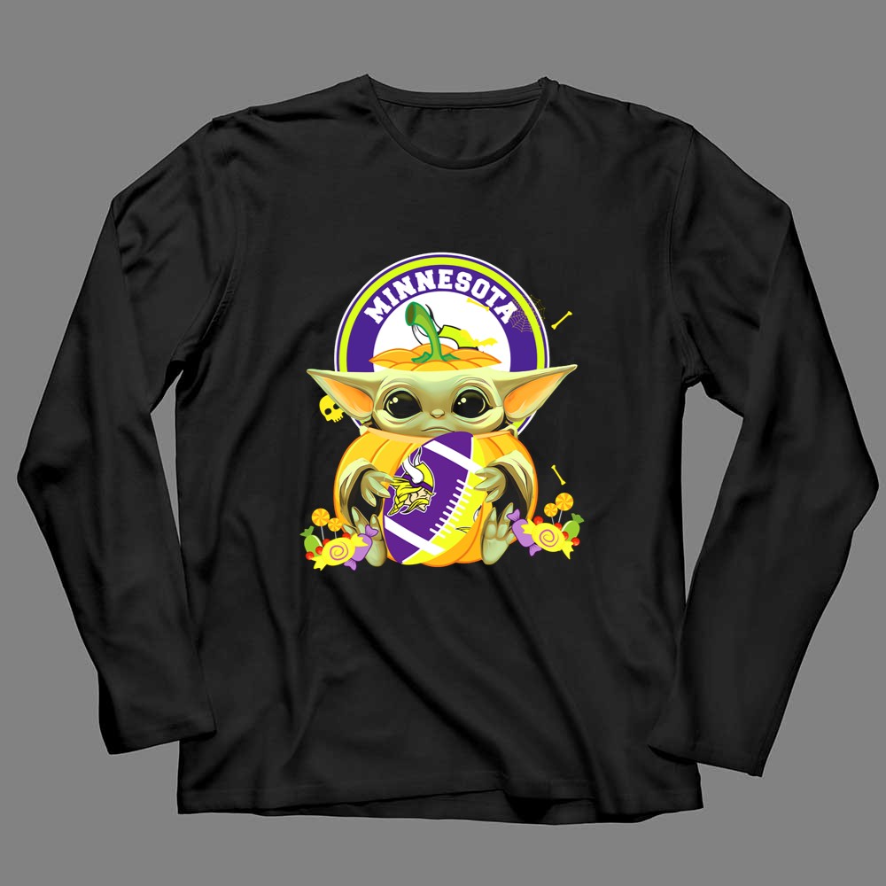 Halloween Pumpkin Baby Yoda Minnesota Vikings Hug Shirt