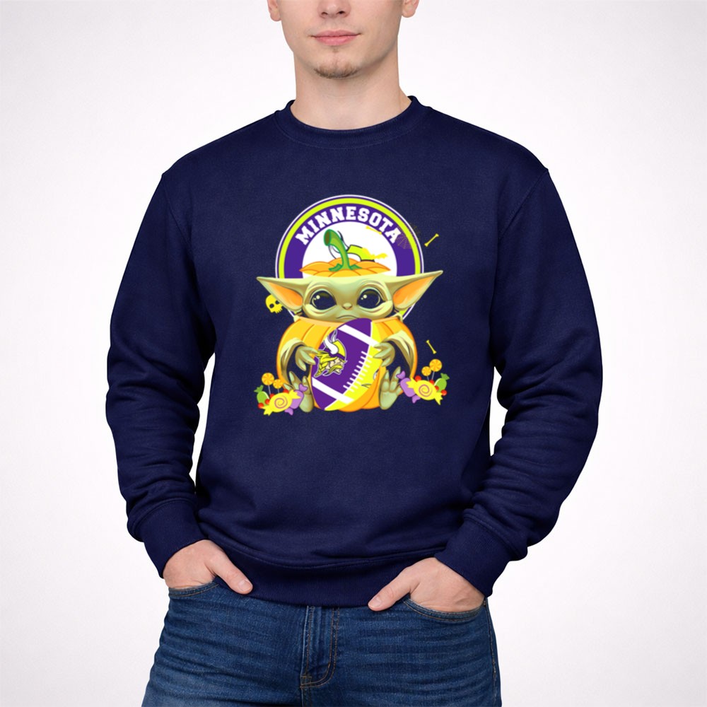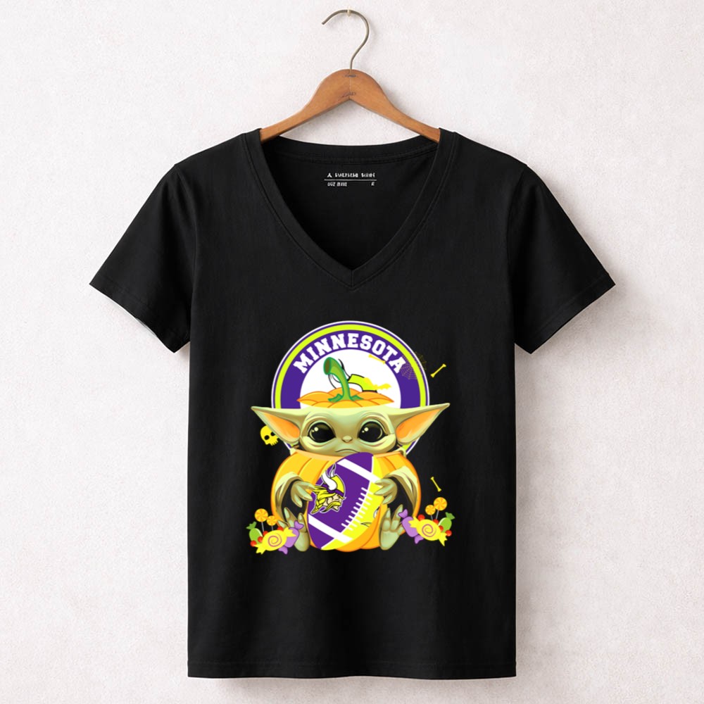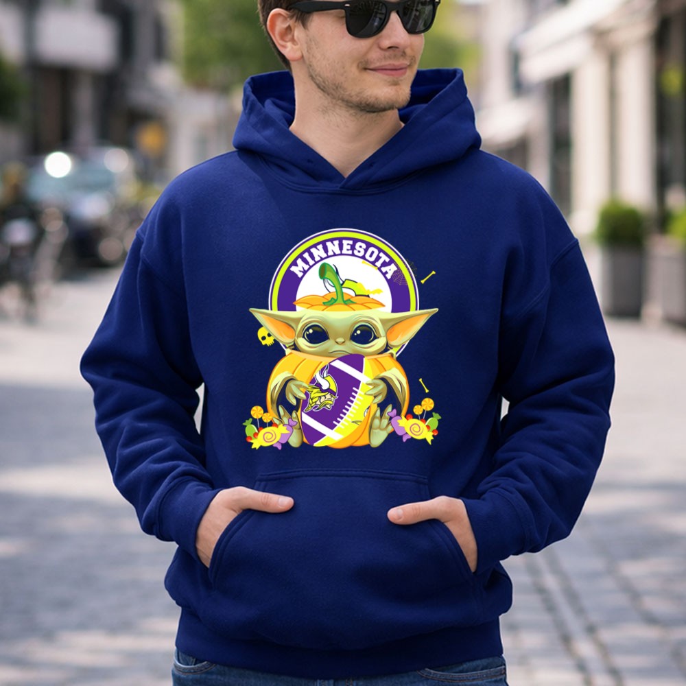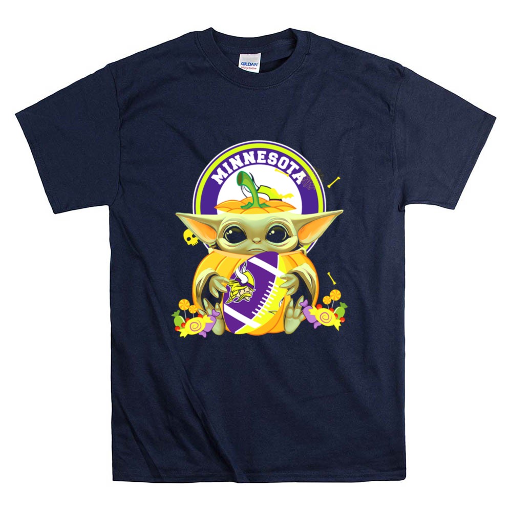 Halloween Pumpkin Baby Yoda Minnesota Vikings Hug Shirt