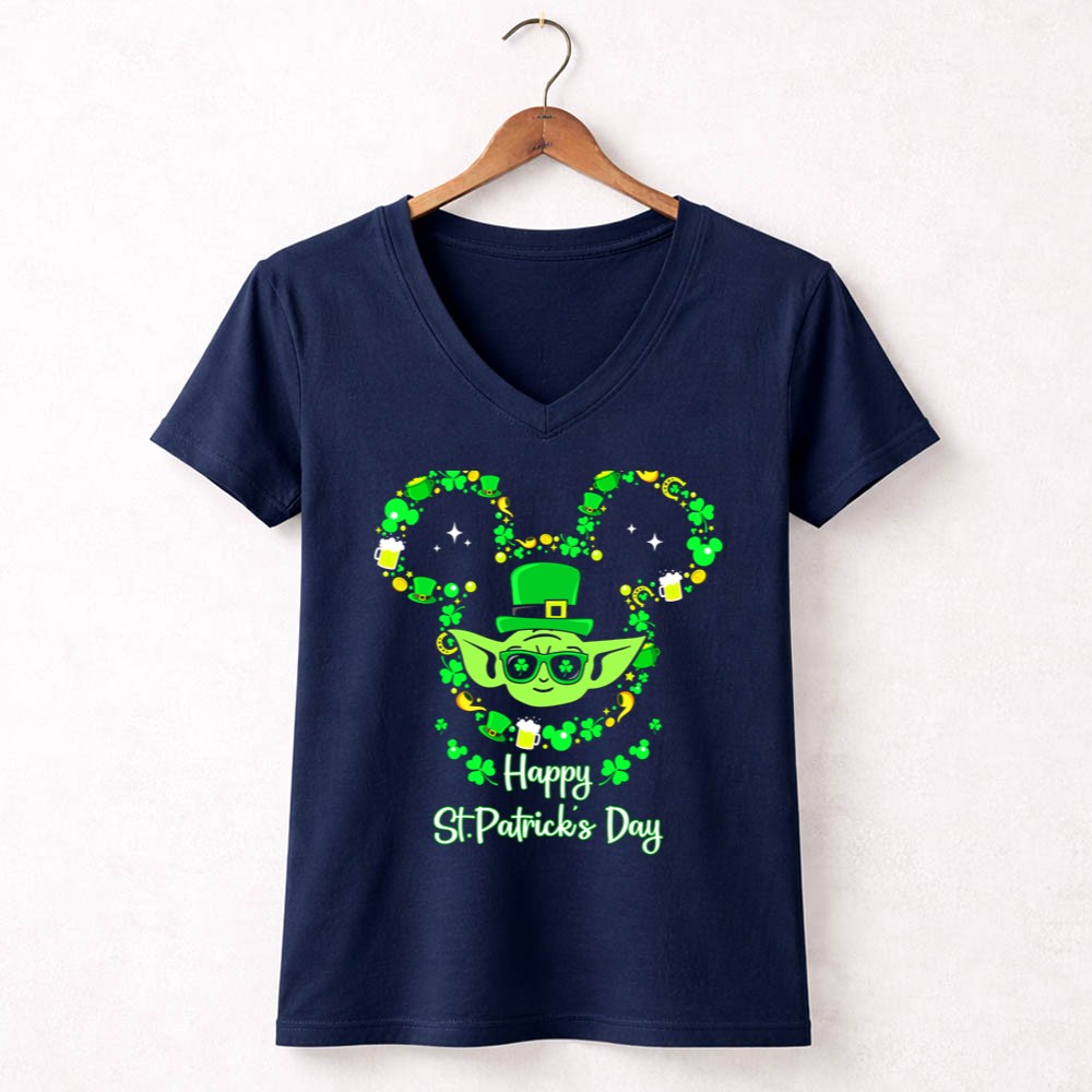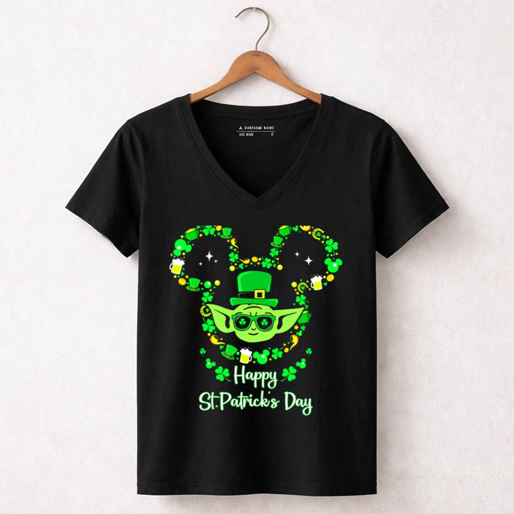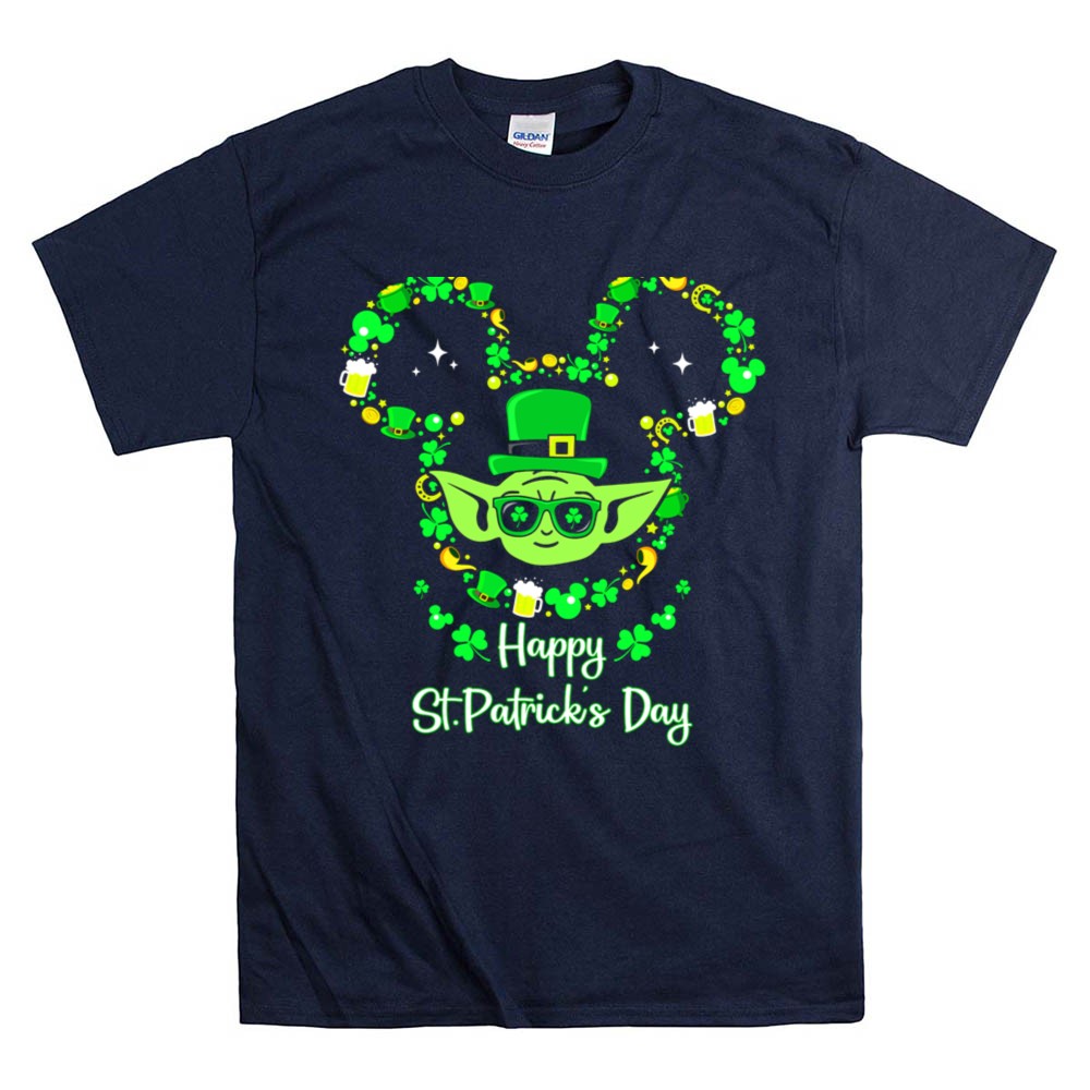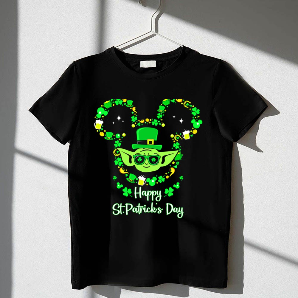 St. Patrick's Day apparel, Baby Yoda merchandise, shamrock t-shirt, Star Wars fan gear, festive celebration shirt, lucky charm design, unique holiday gift, playful character tee