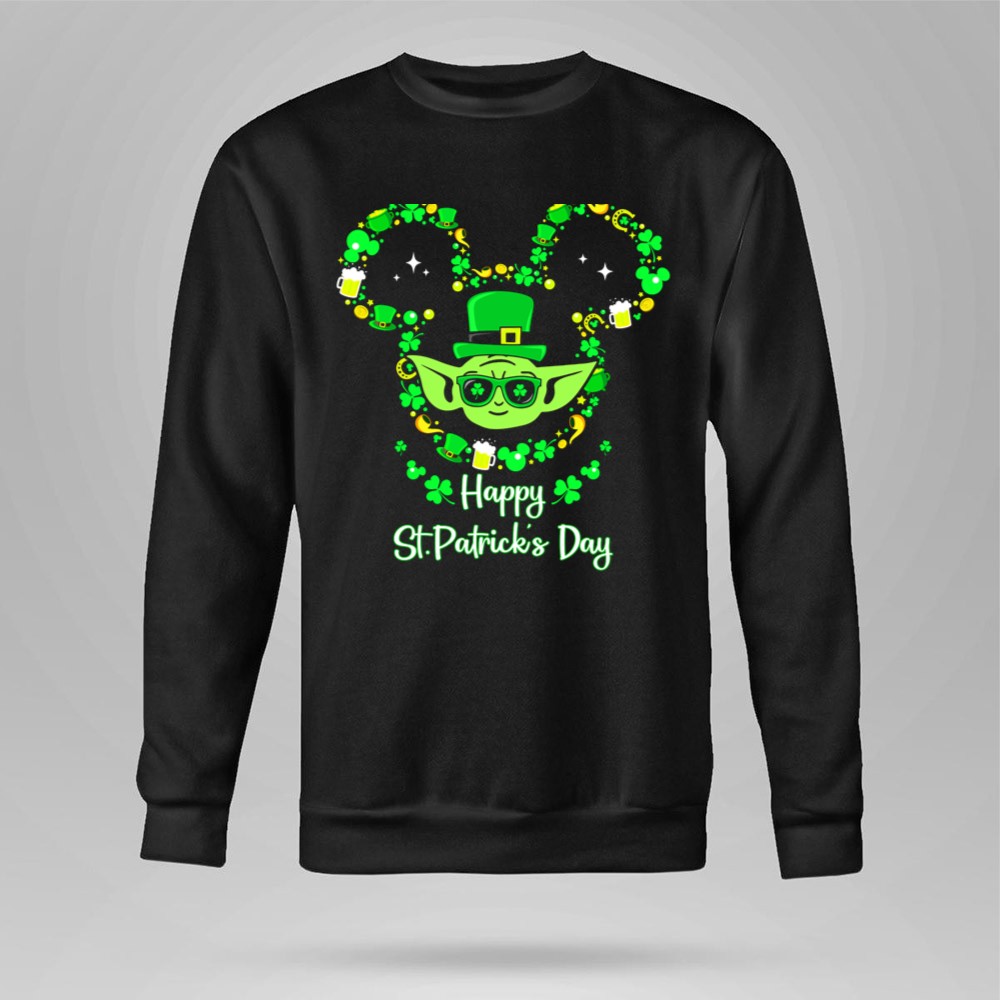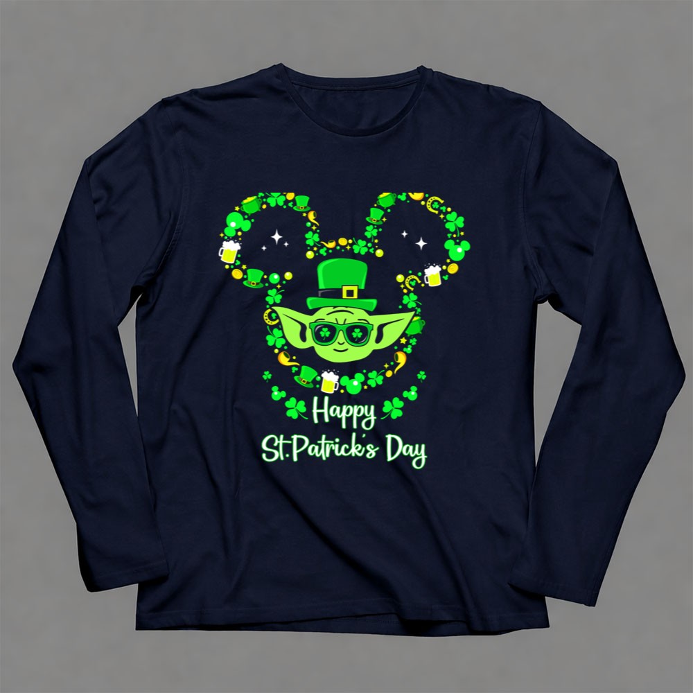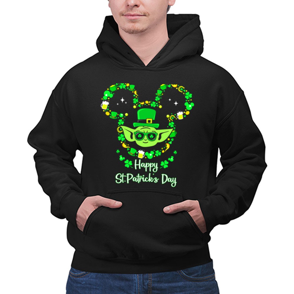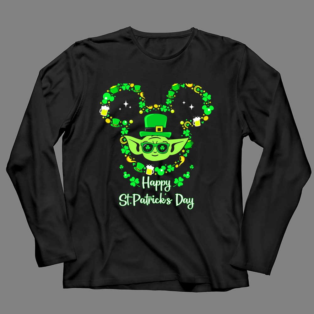 St. Patrick's Day apparel, Baby Yoda merchandise, shamrock t-shirt, Star Wars fan gear, festive celebration shirt, lucky charm design, unique holiday gift, playful character tee