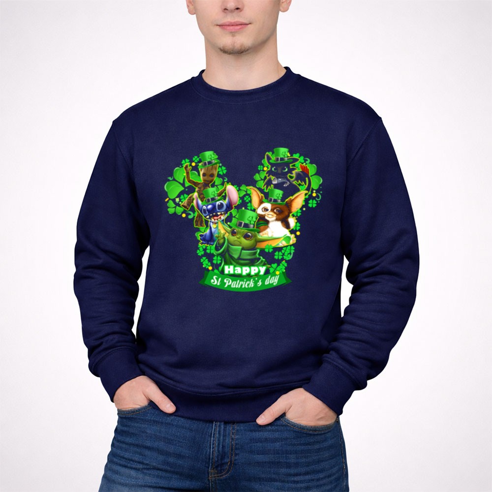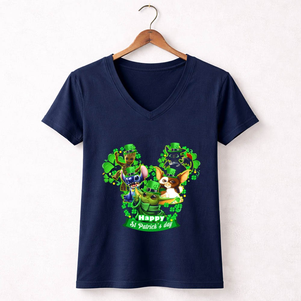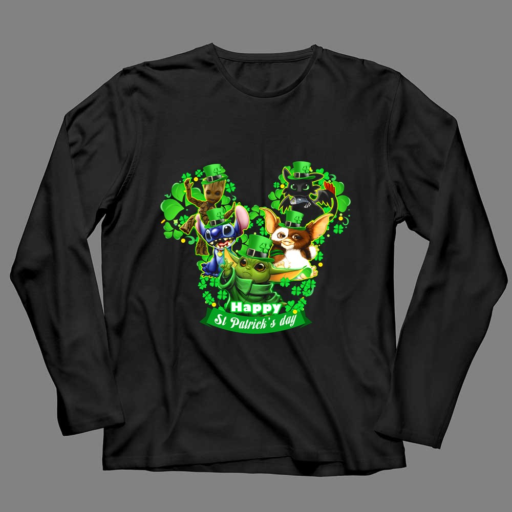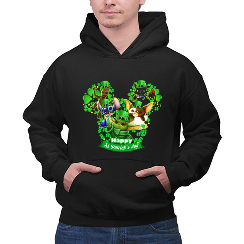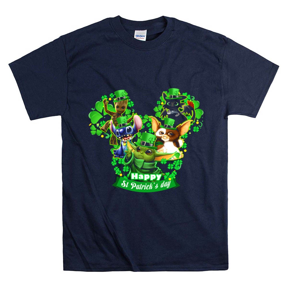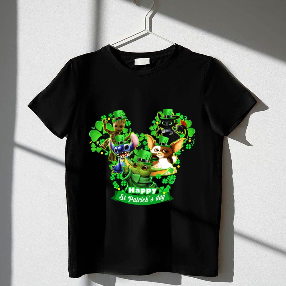 This design captures the spirit of St. Patrick’s Day through a vibrant celebration of beloved characters. Adorned in festive green hats and surrounded by shamrocks, Groot, Gizmo, Stitch, Baby Yoda, and Toothless evoke a sense of joy and togetherness. It’s a whimsical reminder of the magic of childhood and the importance of sharing laughter during the holiday.