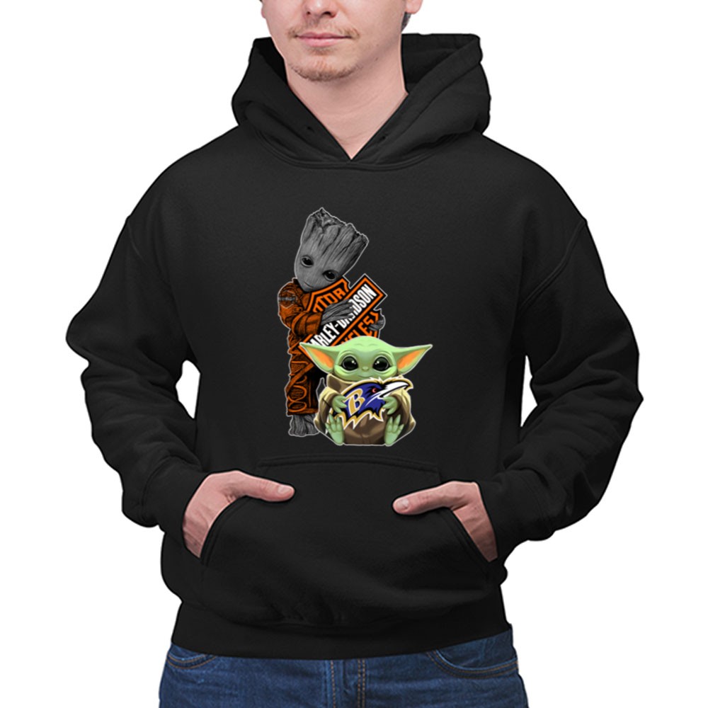 This design captures the joy of fandom by merging two iconic figures, Groot and Baby Yoda, each holding symbols of their respective passions. The playful mashup reflects a deep-seated affection for the Baltimore Ravens while celebrating the whimsy of pop culture. It’s a heartfelt tribute to fans who embrace their unique identities with humor and pride.