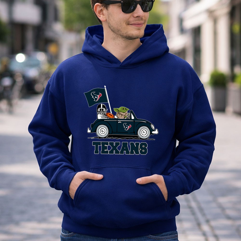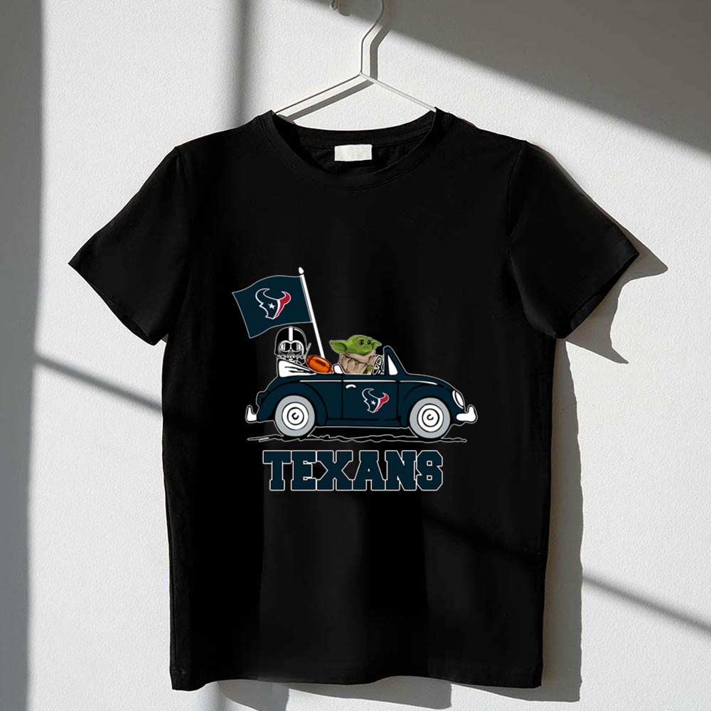 Houston Texans apparel, Star Wars fan gear, Baby Yoda merchandise, Houston football, sci-fi sports crossover, game day t-shirt, pop culture sportswear, fun family gifts