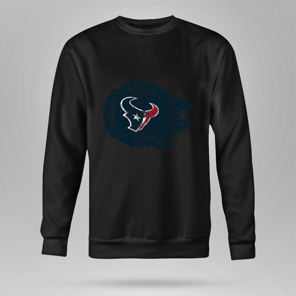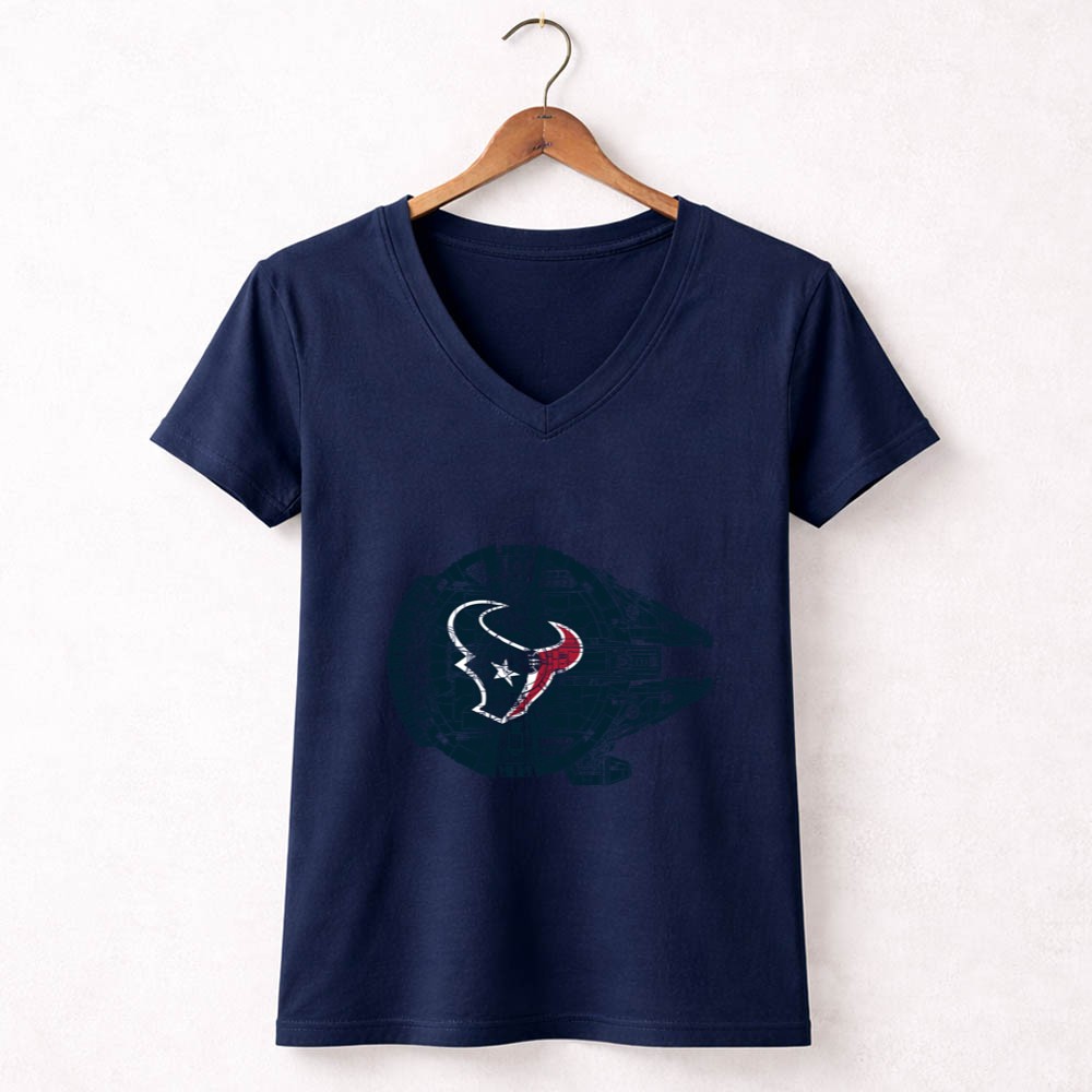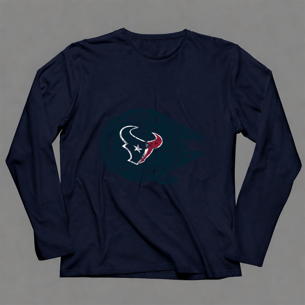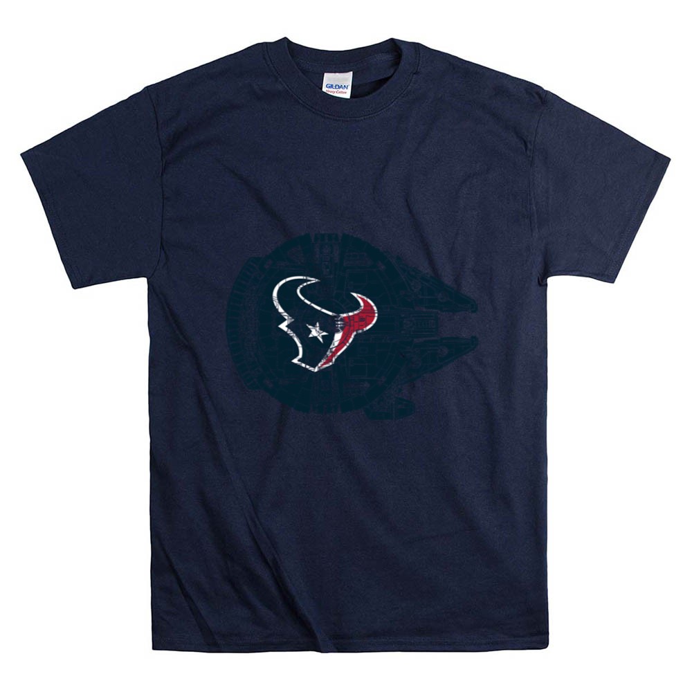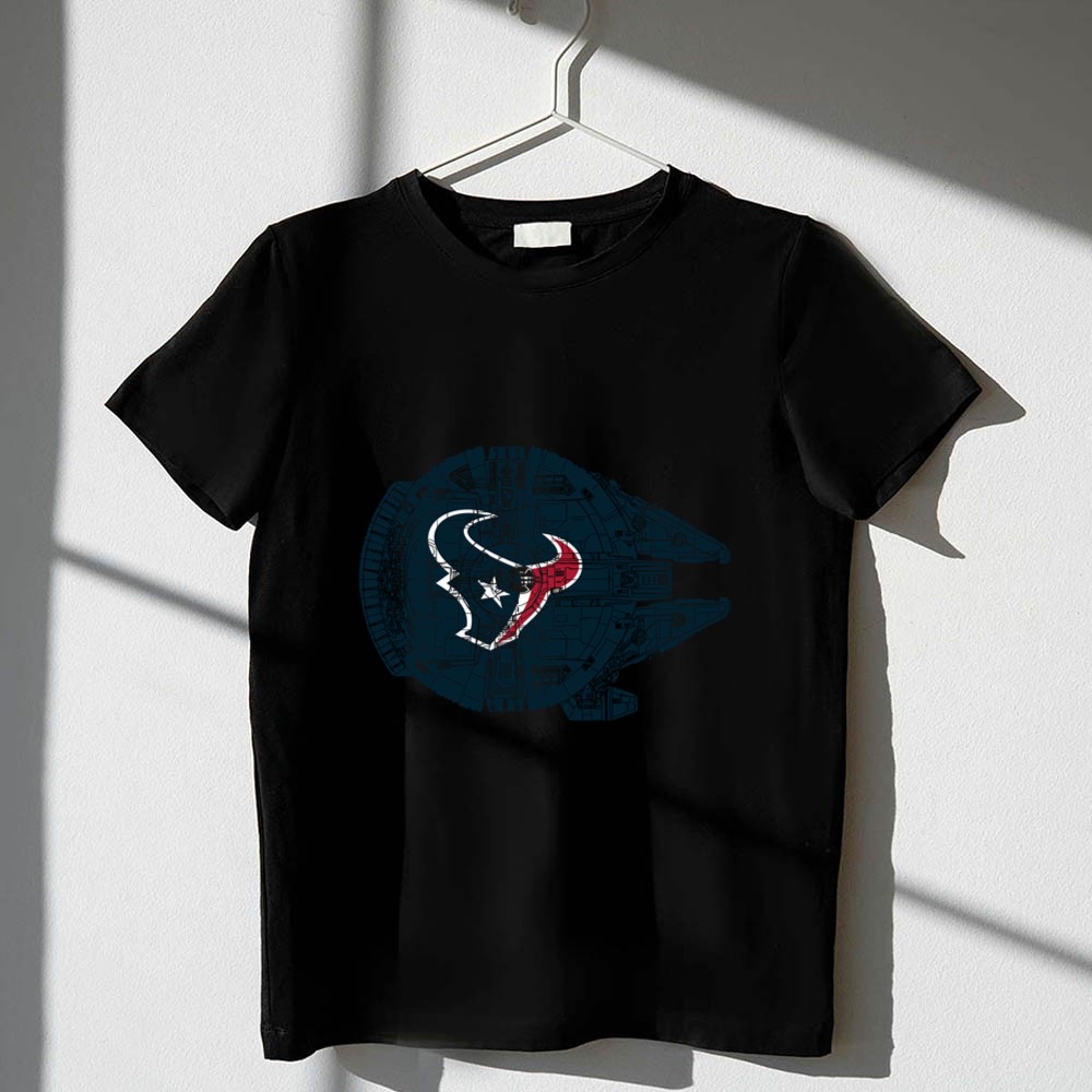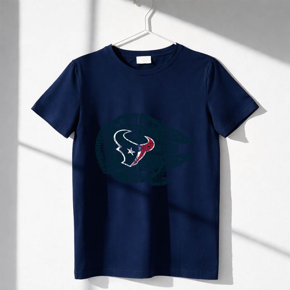 This design elegantly combines the Houston Texans logo with the iconic Millennium Falcon, symbolizing the powerful connection between sports and pop culture. It reflects a deep passion for both the thrill of the NFL and the timeless allure of Star Wars, inviting fans to celebrate their unique identities with pride. It’s more than just apparel; it’s a heartfelt tribute to the spirit of fandom.