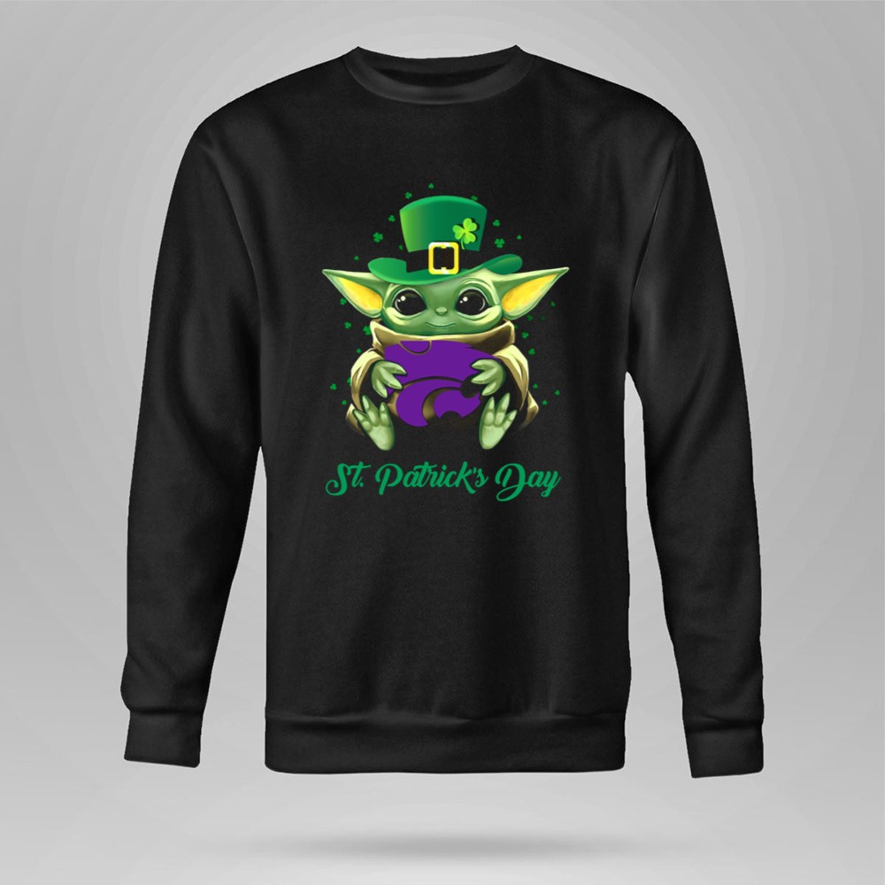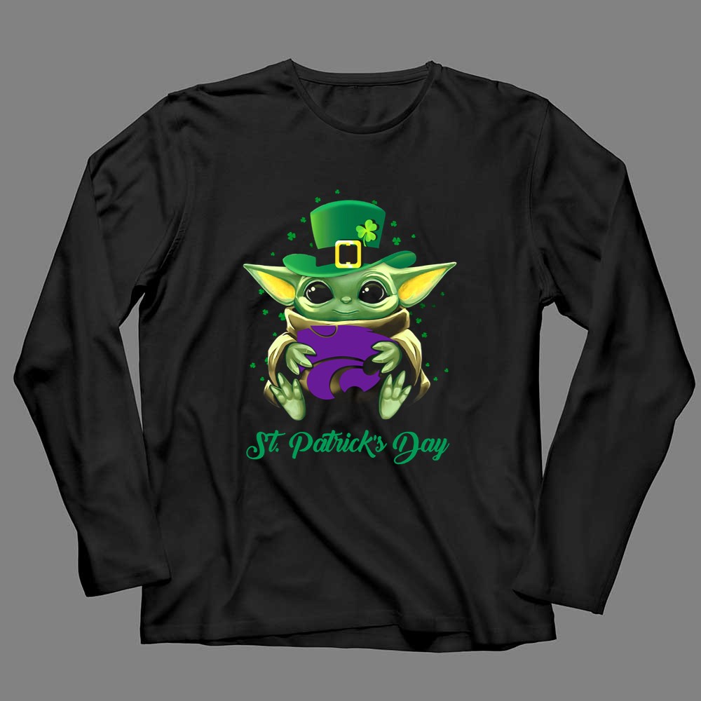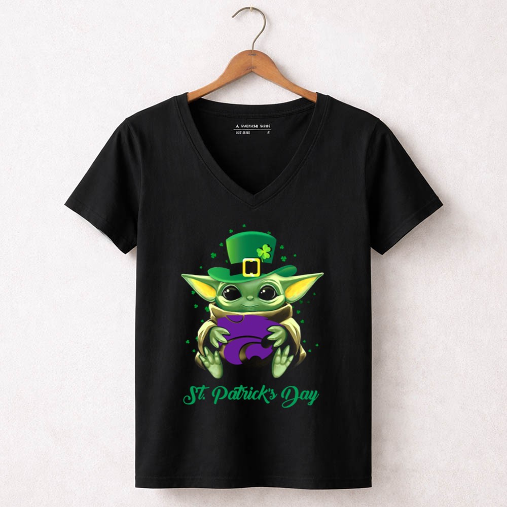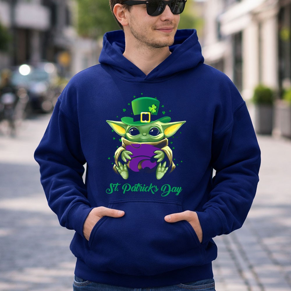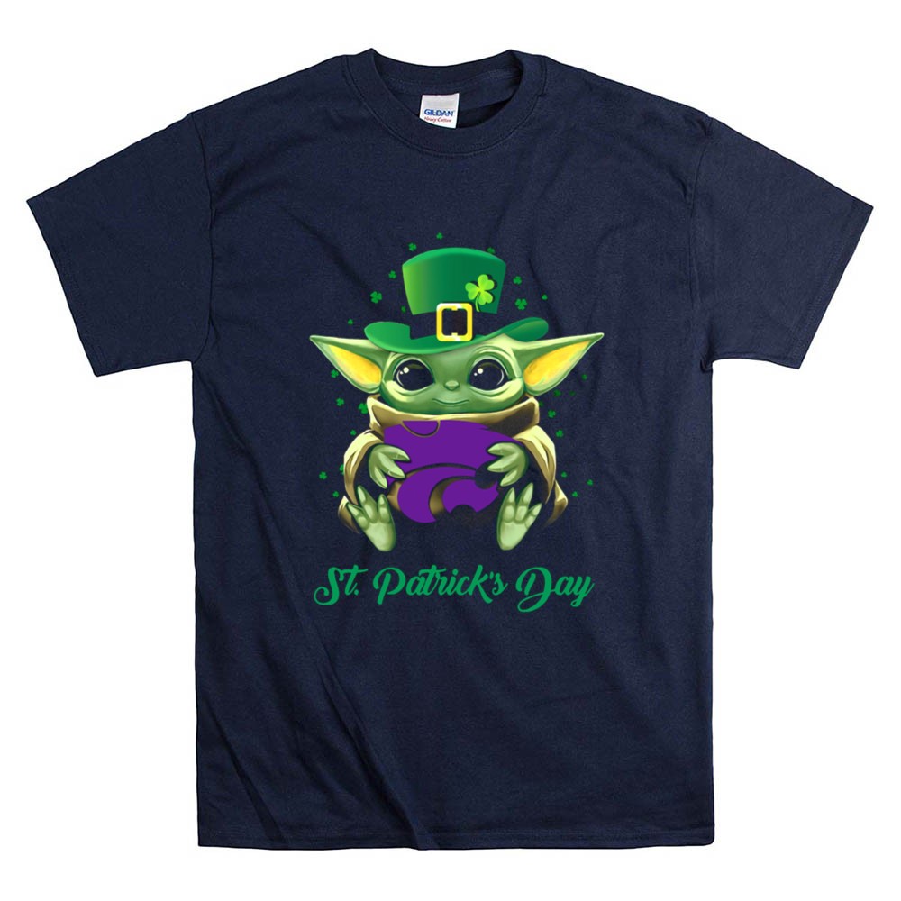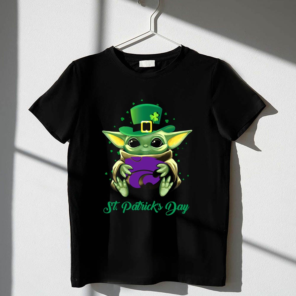 Kansas State Wildcats, Baby Yoda, St. Patrick's Day, college sports pride, fandom apparel, holiday celebration, fun gifts for fans, playful designs