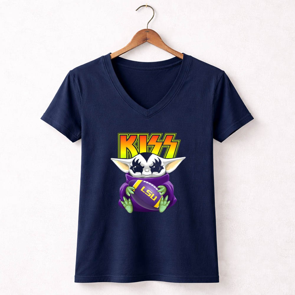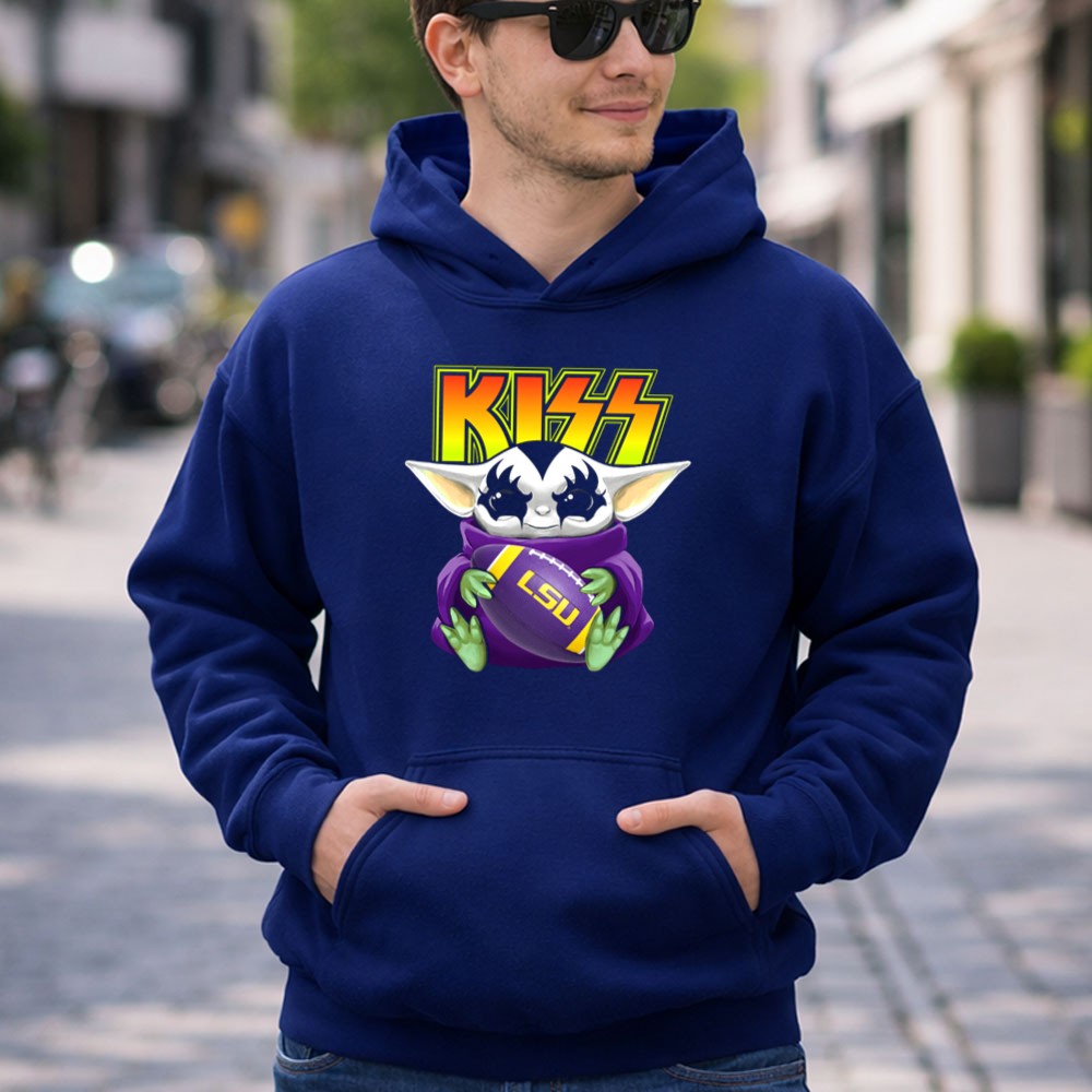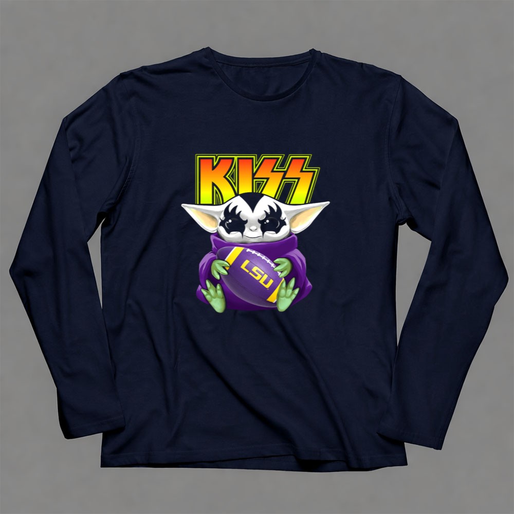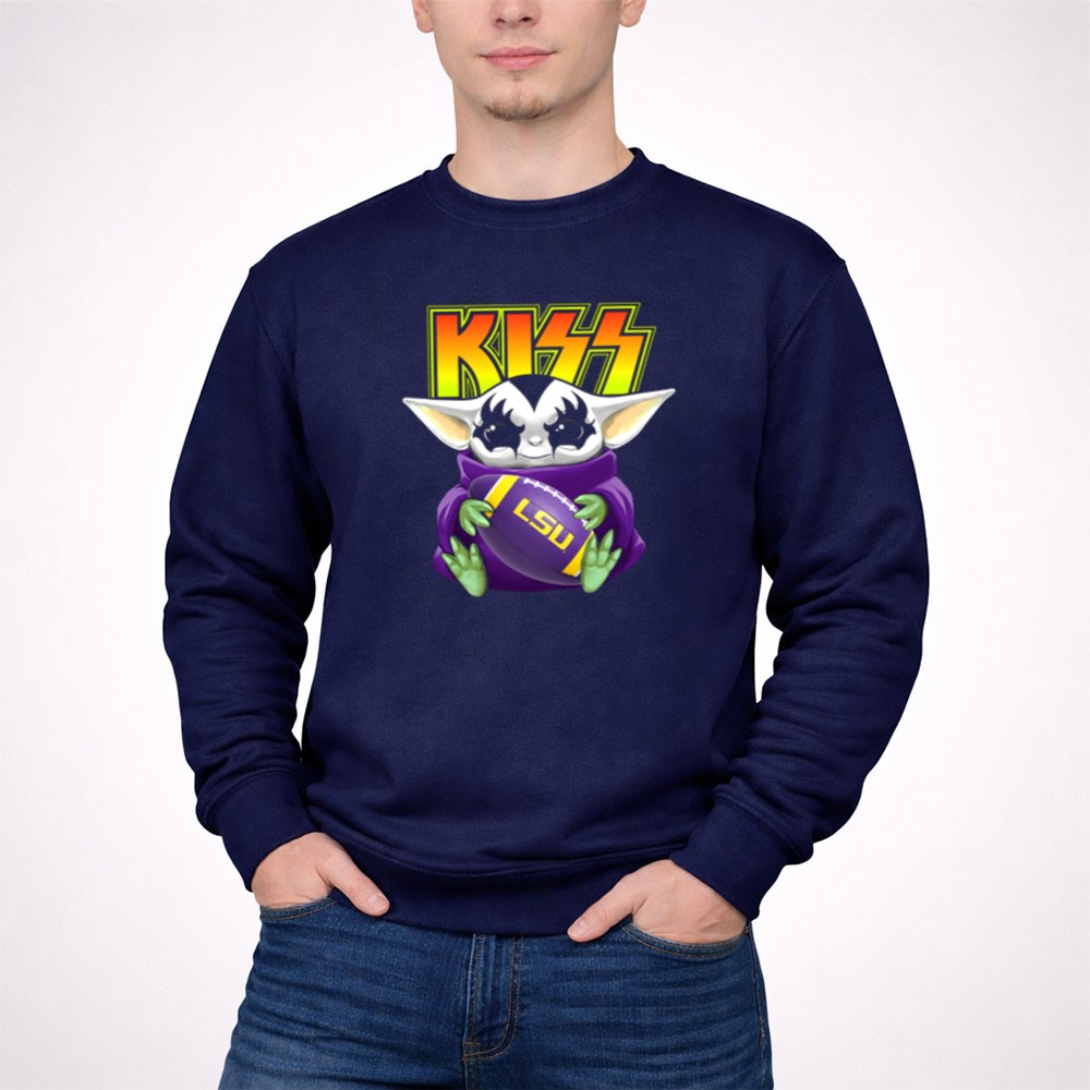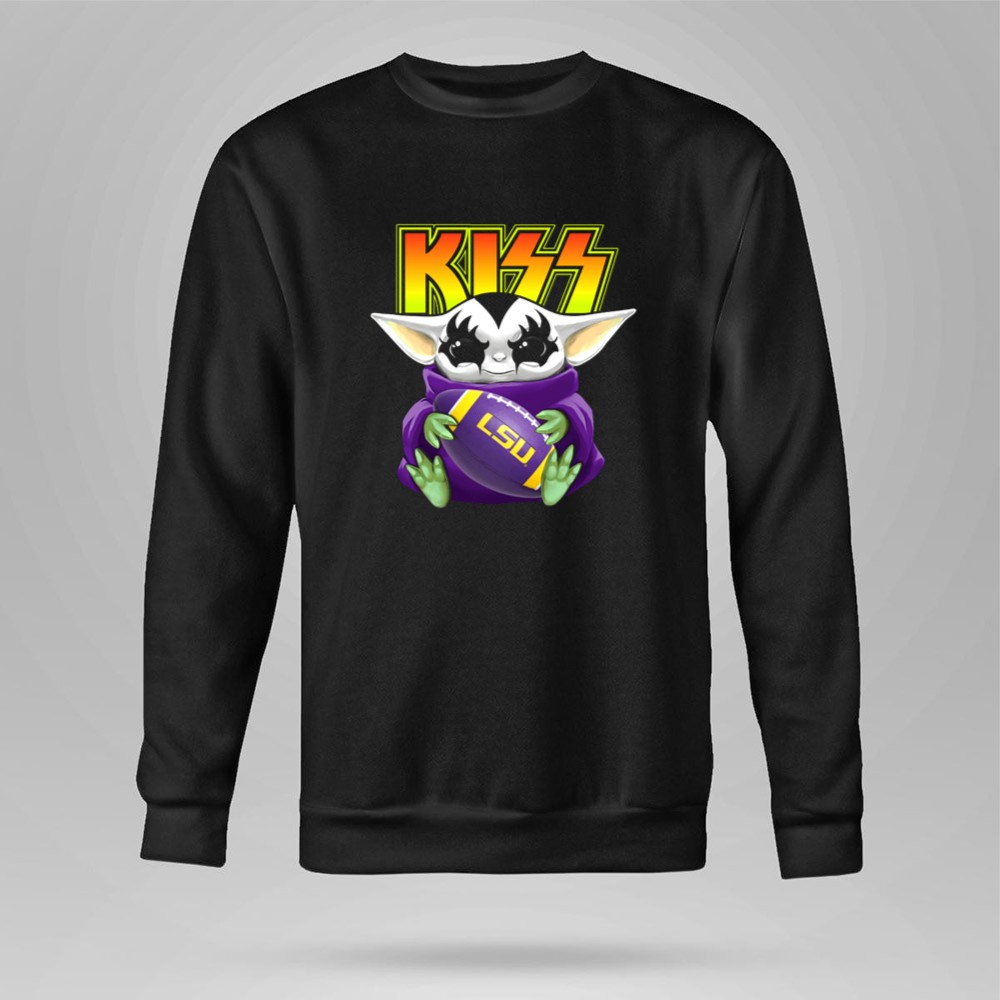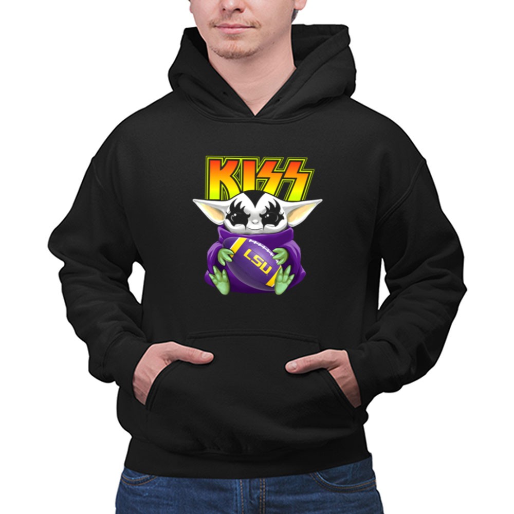 Kiss Baby Yoda Holding Lsu Tigers Football Shirt