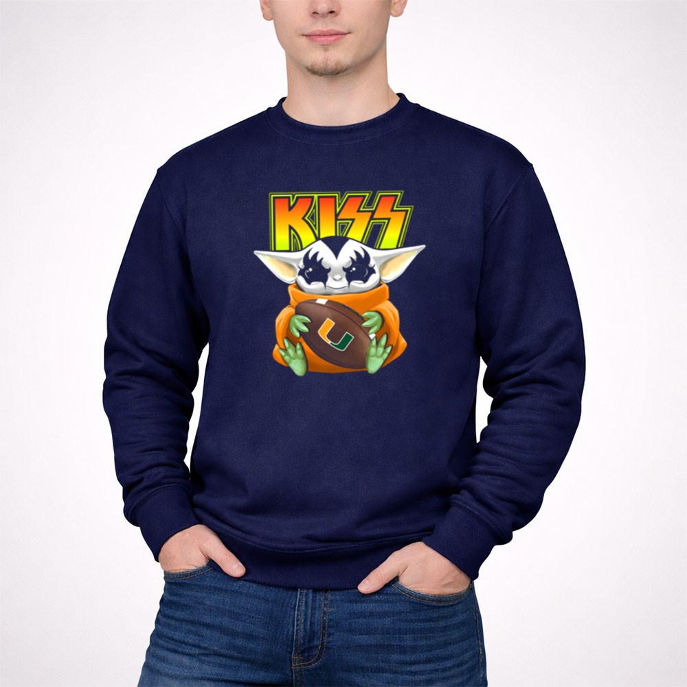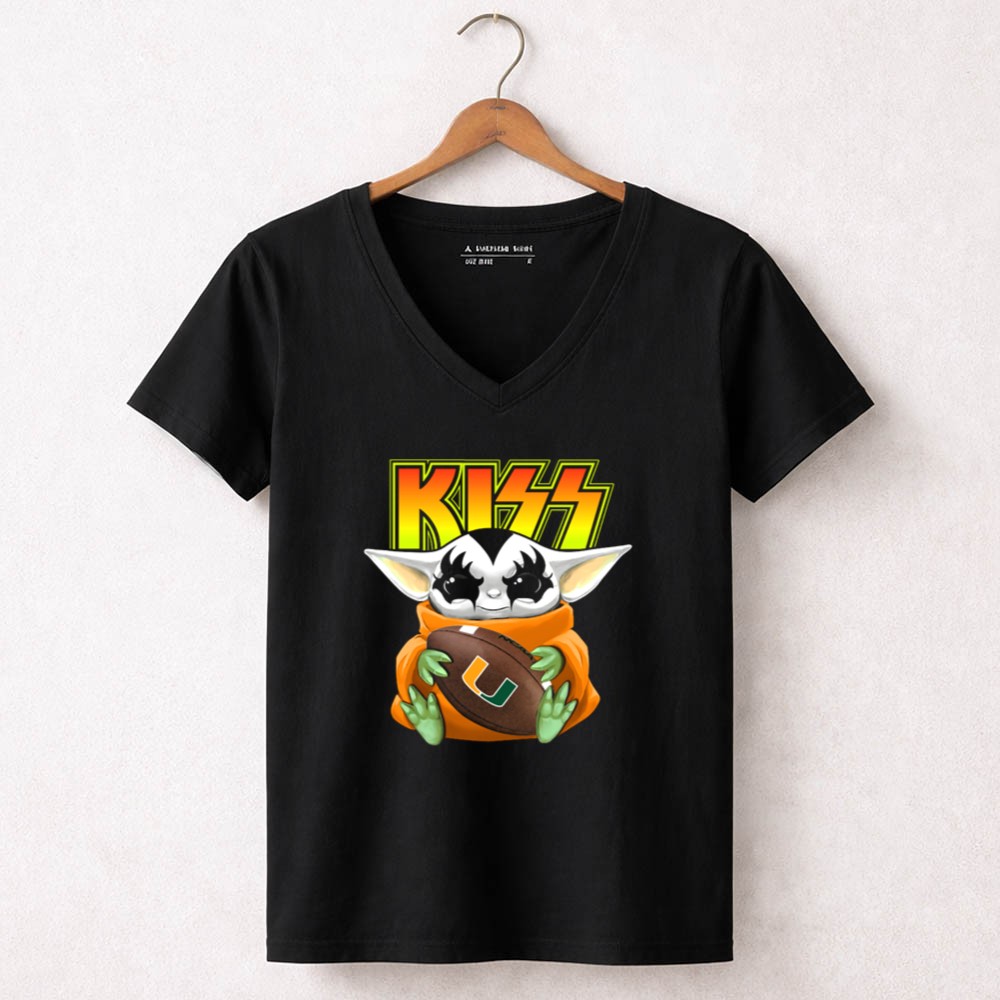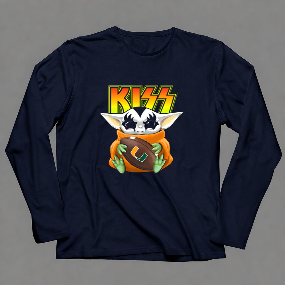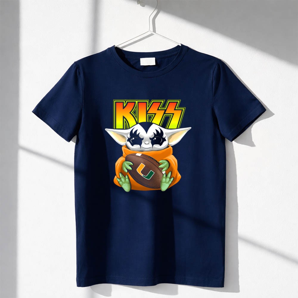 Miami Hurricanes football, Baby Yoda merch, pop culture sports crossover, college football fan gear, vibrant graphic tee, game day fashion, Miami spirit wear, premium cotton t-shirt