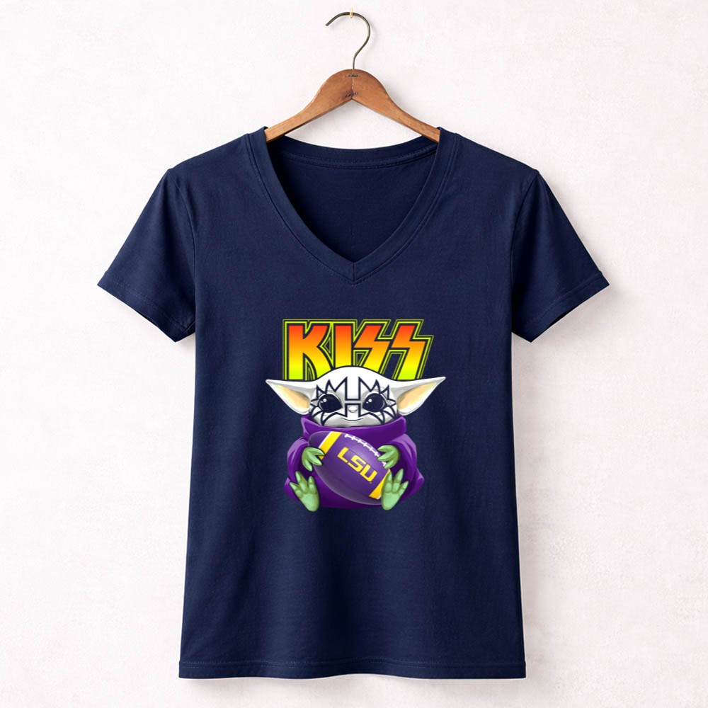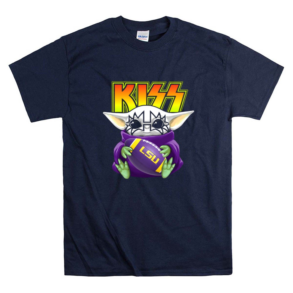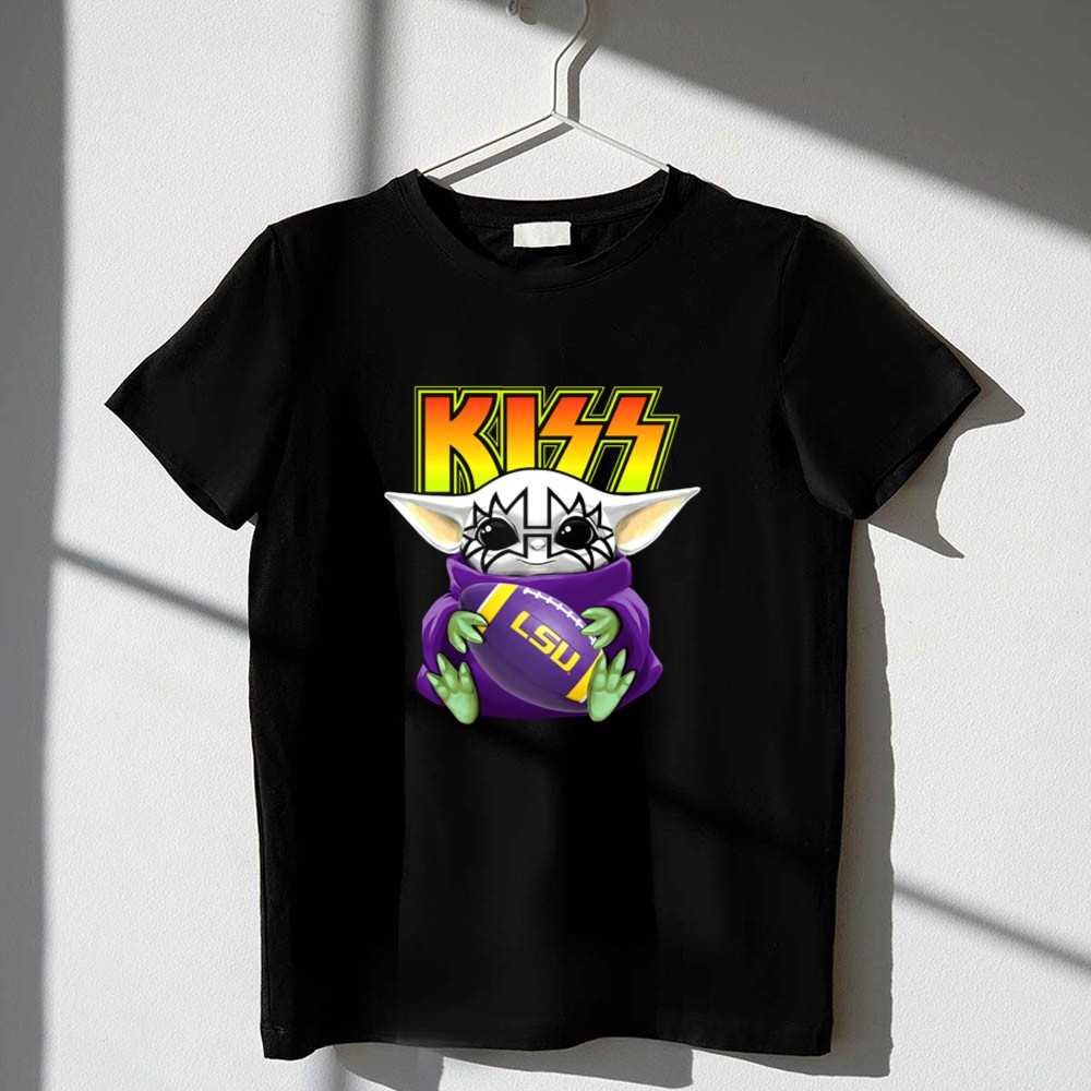 LSU Tigers football, Baby Yoda merchandise, KISS band apparel, college football fans, Louisiana pride, game day t-shirt, fandom crossover, unique gift for fans