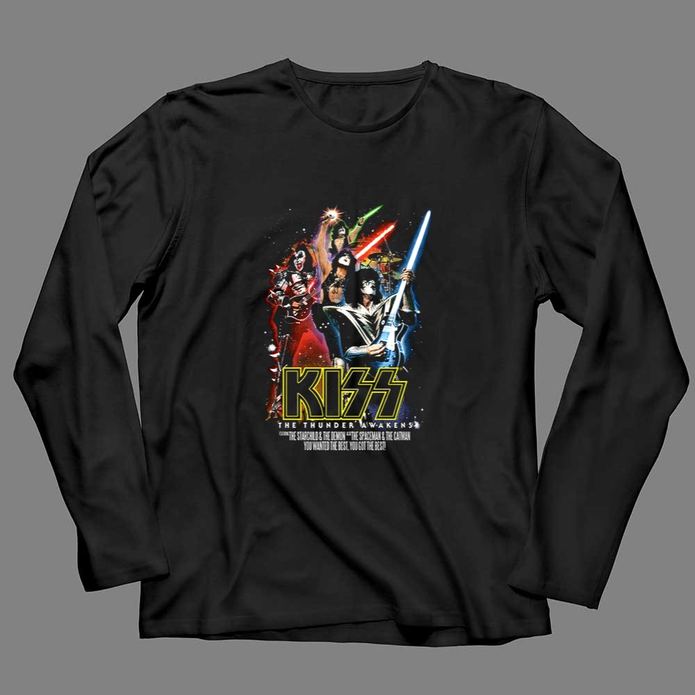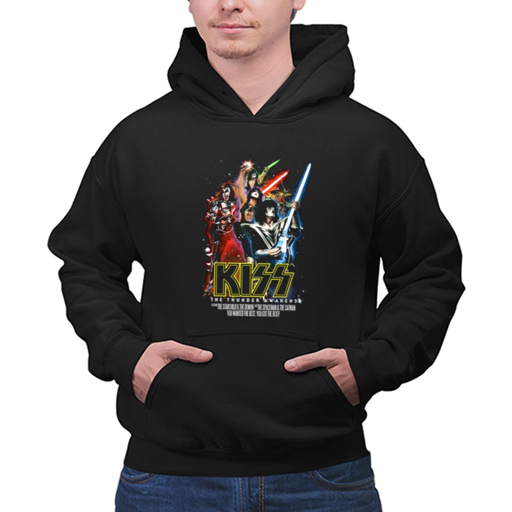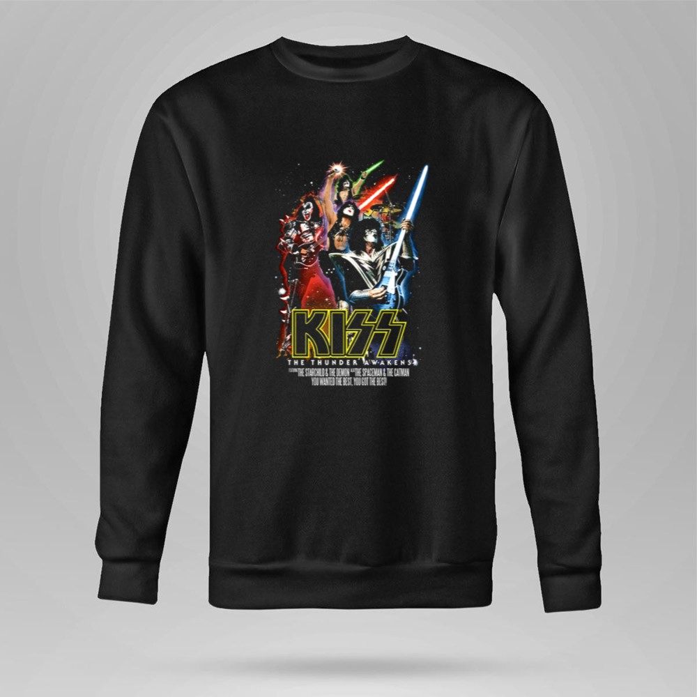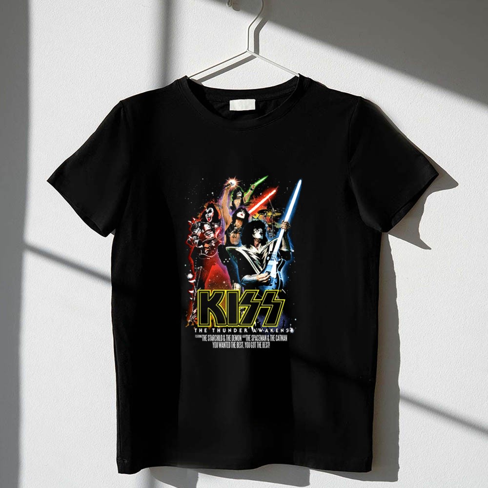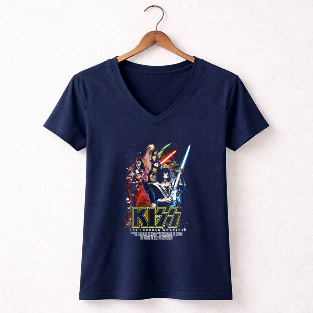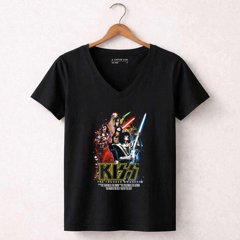 KISS band t-shirt, Star Wars fan apparel, rock music collectibles, pop culture mashup, vintage concert tee, iconic band graphic, tribute to legends, music and movie fusion