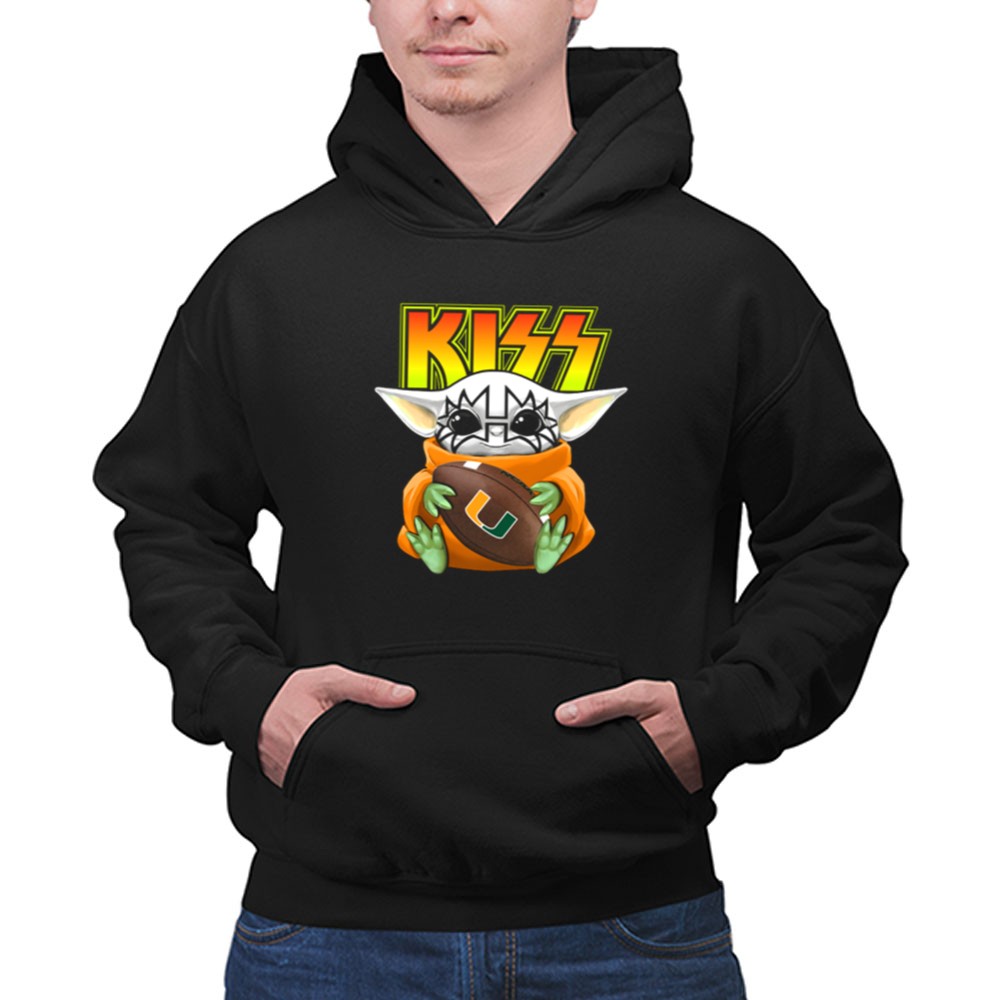 Miami Hurricanes, college football, Baby Yoda, KISS band, sports fandom, game day apparel, unique fan gear, collegiate pride