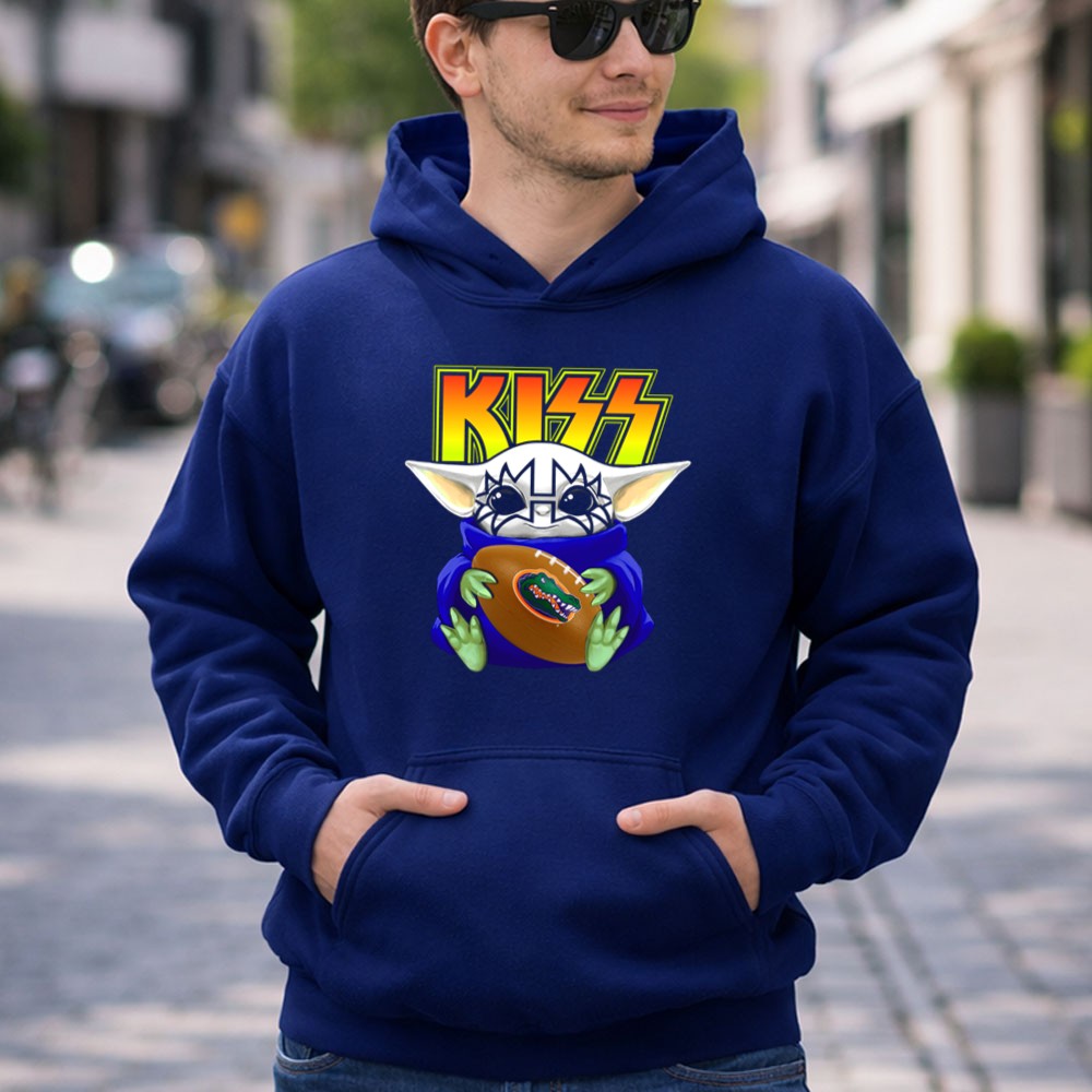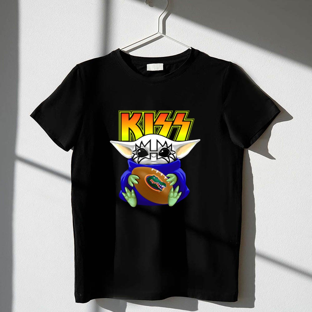 Florida Gators fan gear, Baby Yoda merchandise, KISS band apparel, college football spirit, playful sports design, game day fashion, Gators pride, unique gift for fans