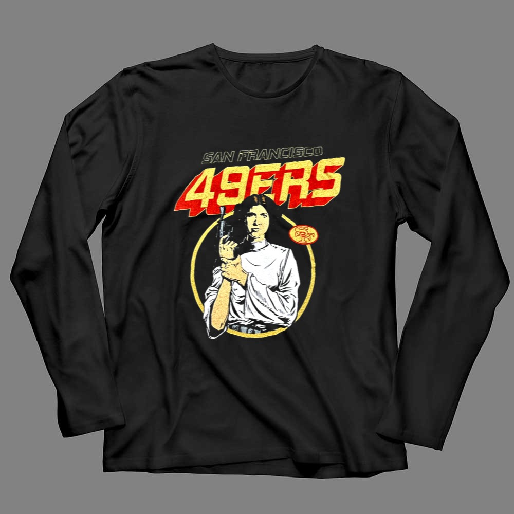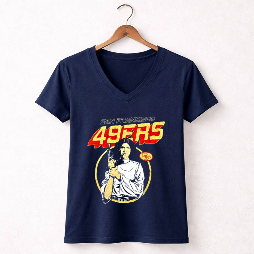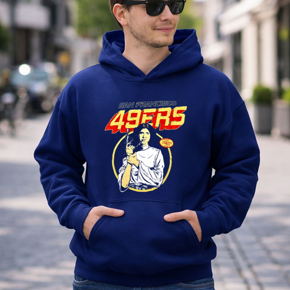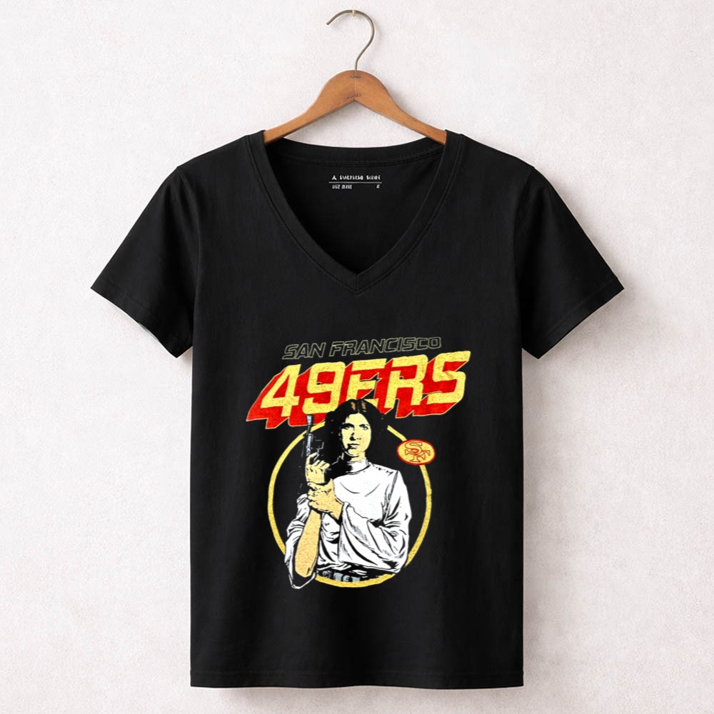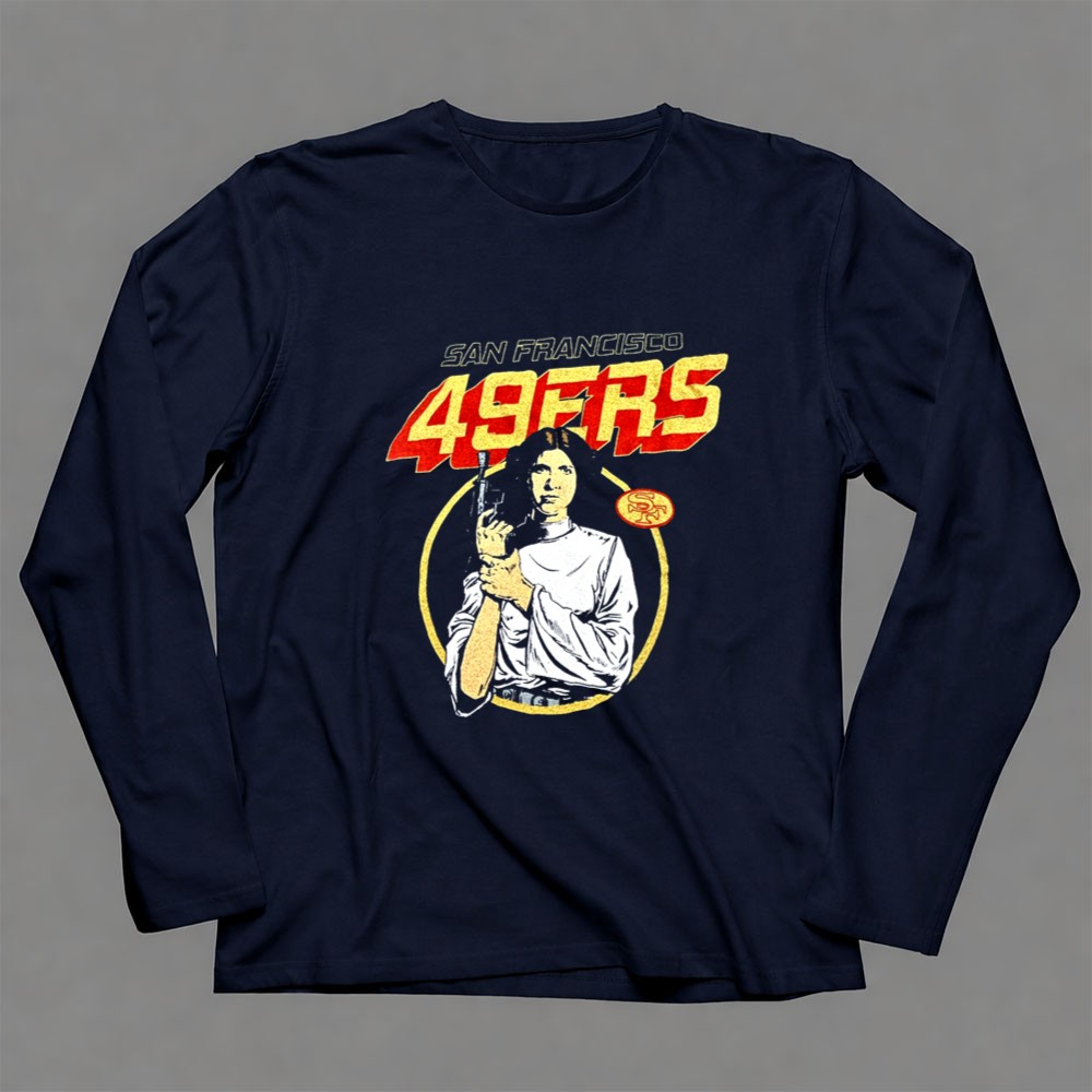San Francisco 49ers apparel, Leia Organa Star Wars design, Bay Area sports pride, premium cotton tee, fandom crossover, game day fashion, sci-fi sports mashup, iconic franchise