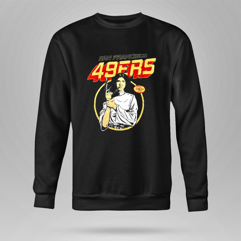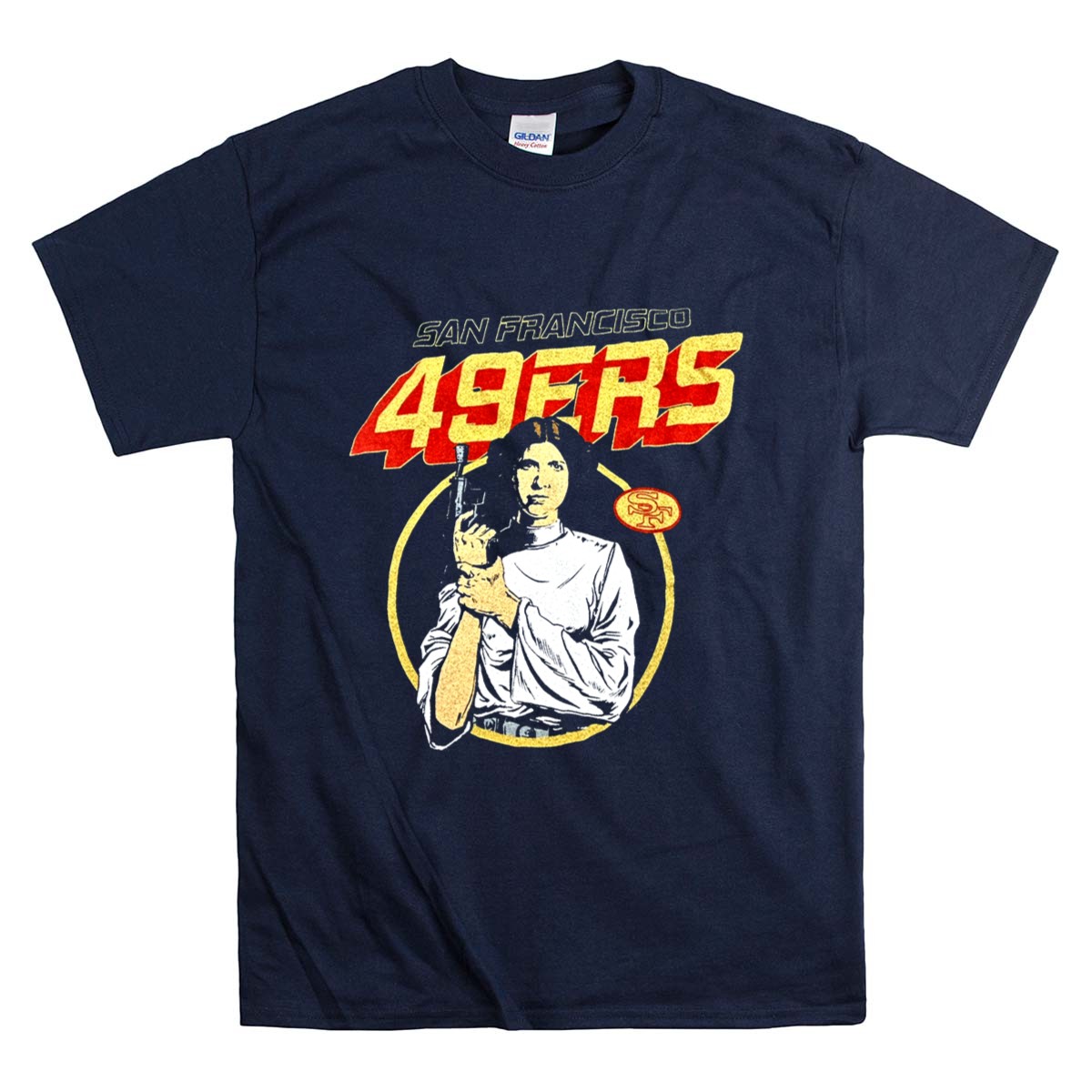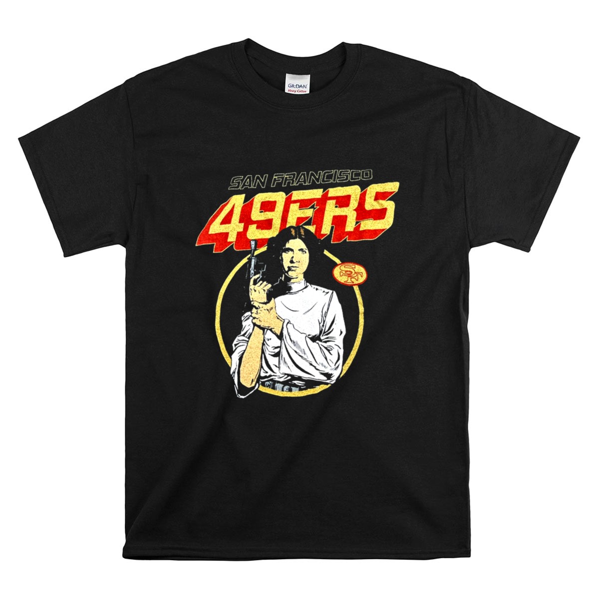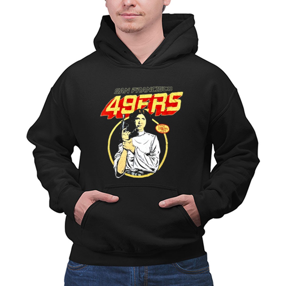 San Francisco 49ers apparel, Leia Organa Star Wars design, Bay Area sports pride, premium cotton tee, fandom crossover, game day fashion, sci-fi sports mashup, iconic franchise