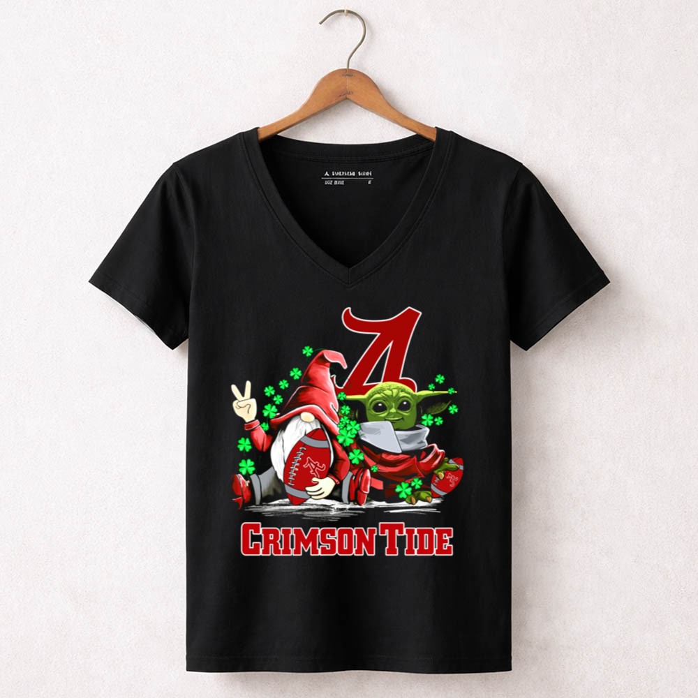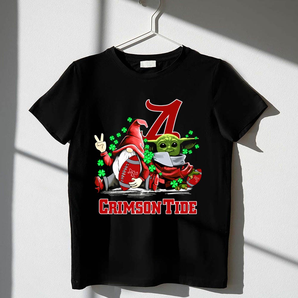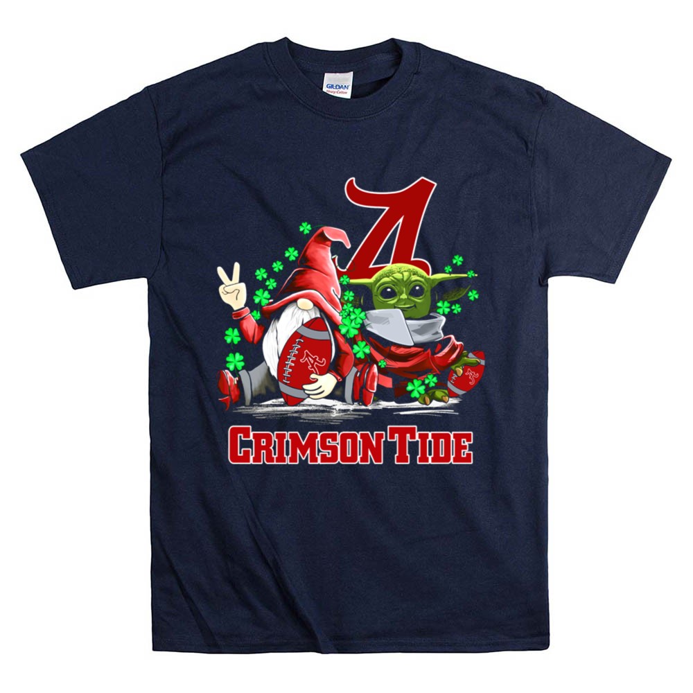 Alabama Crimson Tide pride, St. Patrick's Day apparel, college football fans, Tuscaloosa spirit, lucky gnomes, Baby Yoda, game day shirt, holiday cheer