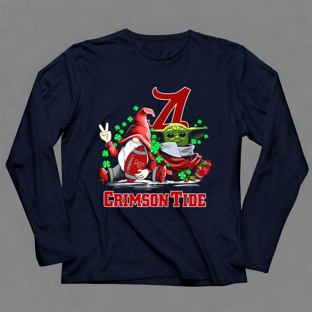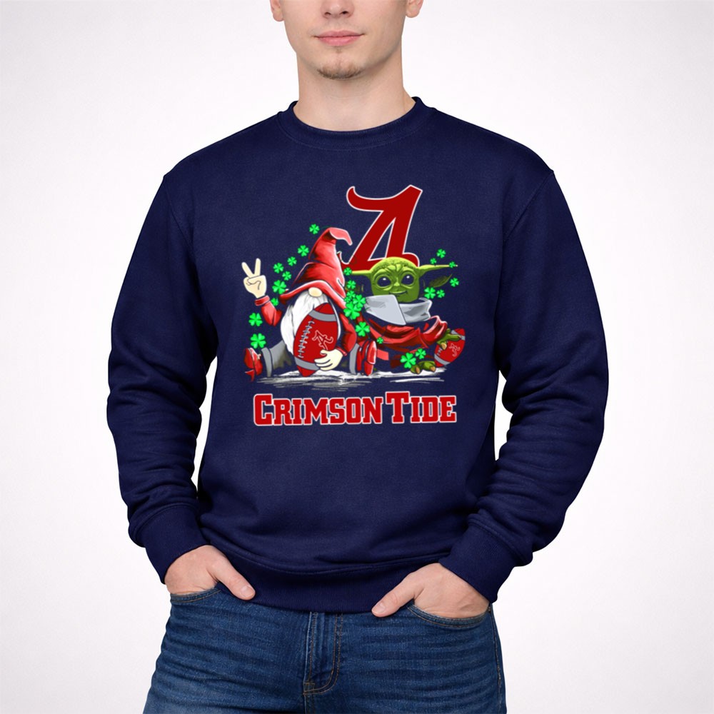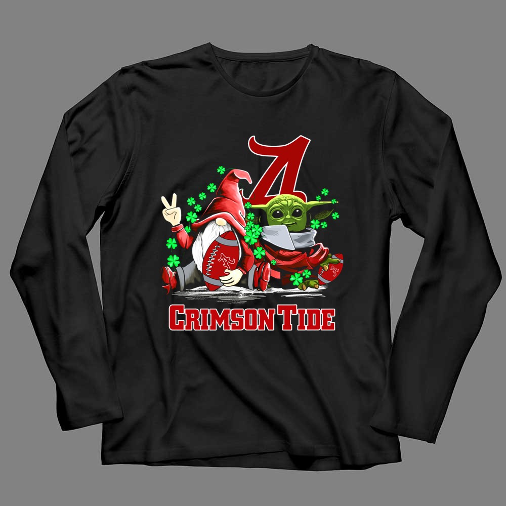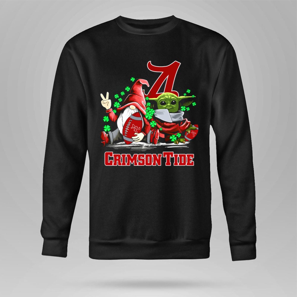 Alabama Crimson Tide pride, St. Patrick's Day apparel, college football fans, Tuscaloosa spirit, lucky gnomes, Baby Yoda, game day shirt, holiday cheer