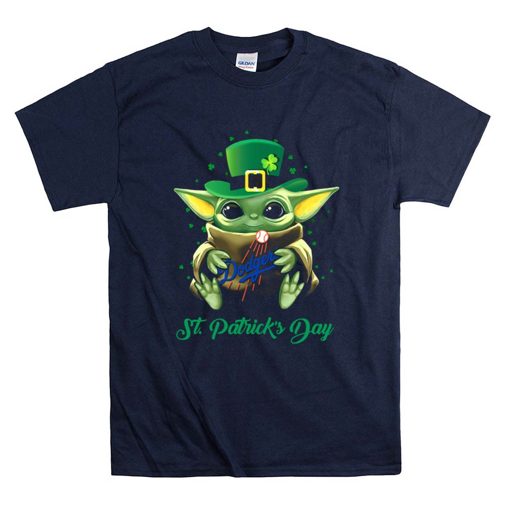 Los Angeles Dodgers apparel, Baby Yoda merch, St. Patrick's Day celebration, Dodger Stadium pride, playful sports fashion, cute fandom gifts, holiday-themed t-shirt, baseball fan essentials