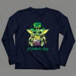 This design captures the whimsy of Baby Yoda donning a green top hat, clutching an LSU tiger, symbolizing a delightful fusion of fandom and celebration. It’s a tribute to the joy and camaraderie that comes with St. Patrick’s Day festivities, evoking a sense of pride among LSU supporters and creating a joyful atmosphere for all.