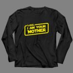 This design brings to life a beloved cinematic moment, humorously reminding us of the unique bond between a mother and son. The bold graphic celebrates both nostalgia and the lighthearted spirit of Star Wars fandom, making it a cherished piece for any family movie night. It’s a tribute that resonates deeply with fans while adding a playful touch to everyday wear.