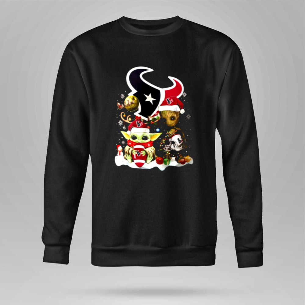 Mashup Baby Yoda And Groot Santa Christmas Houston Texans Shirt