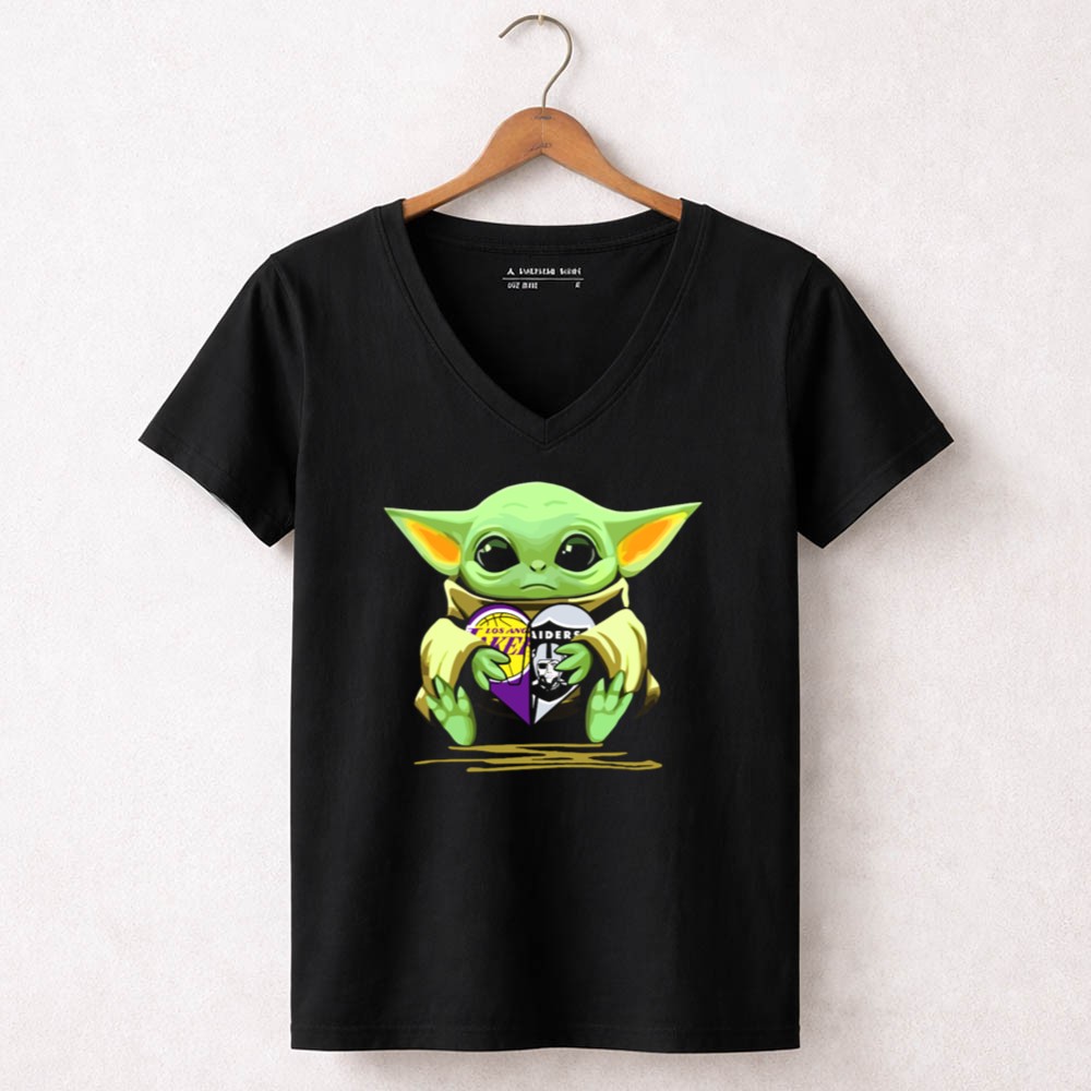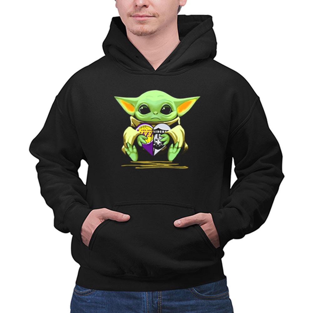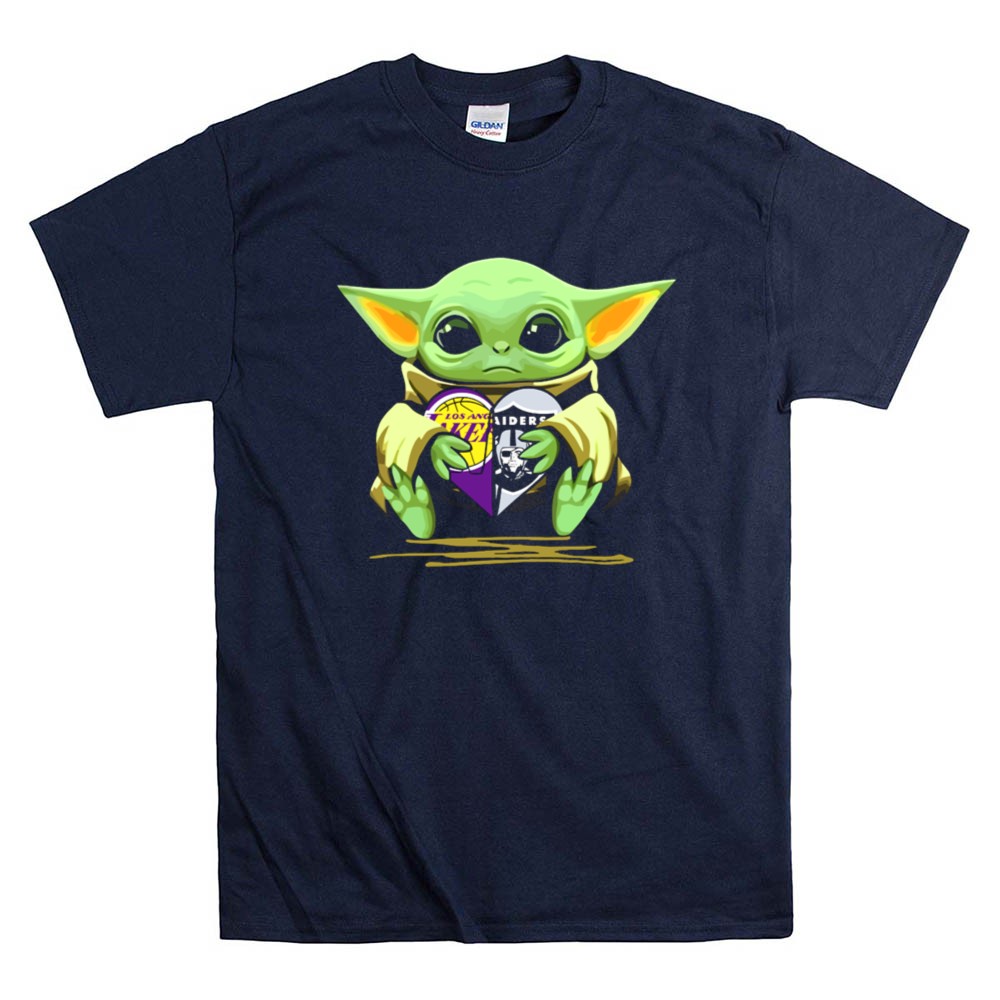Los Angeles sports culture, Lakers pride, Raiders loyalty, Baby Yoda fandom, game day apparel, pop culture mashup, premium unisex t-shirt, Los Angeles legends
