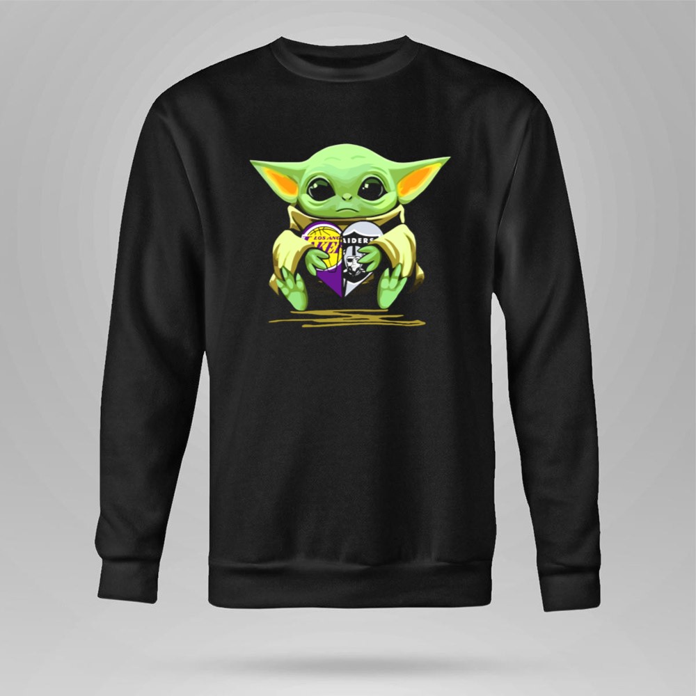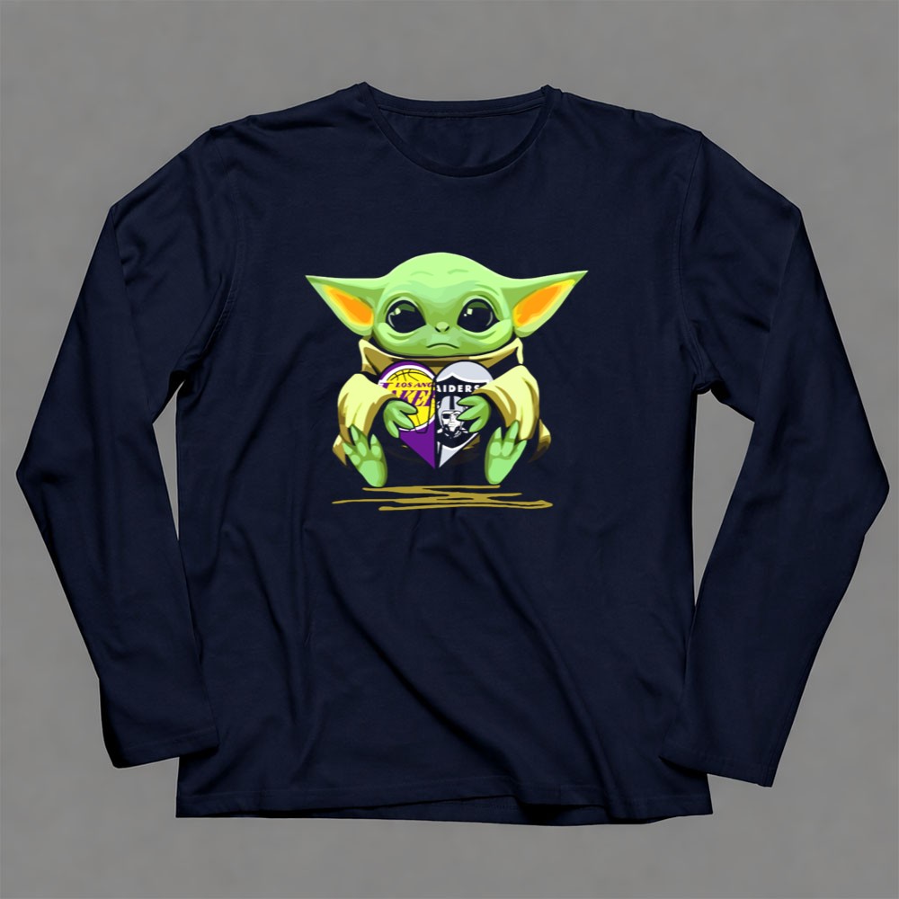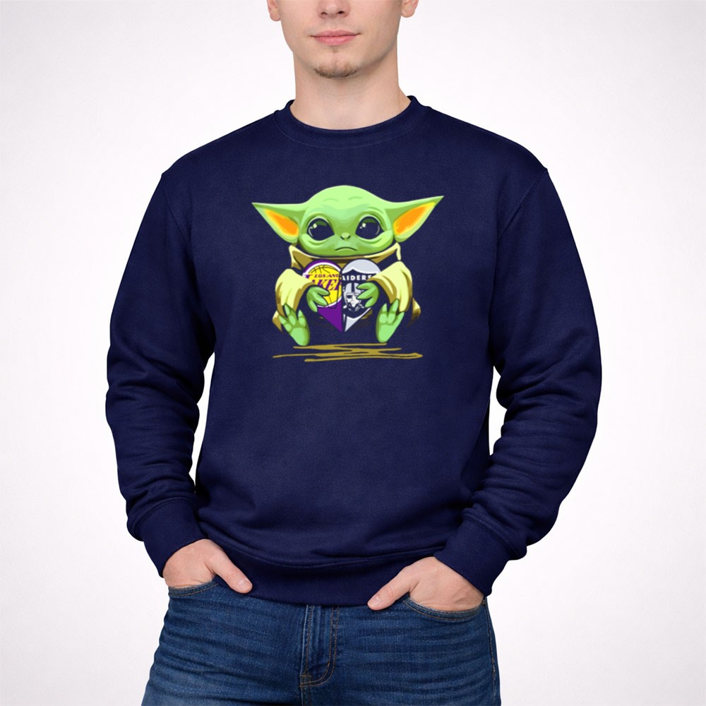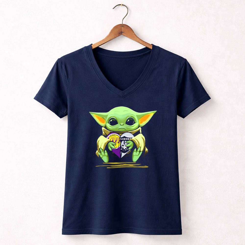 Los Angeles sports culture, Lakers pride, Raiders loyalty, Baby Yoda fandom, game day apparel, pop culture mashup, premium unisex t-shirt, Los Angeles legends