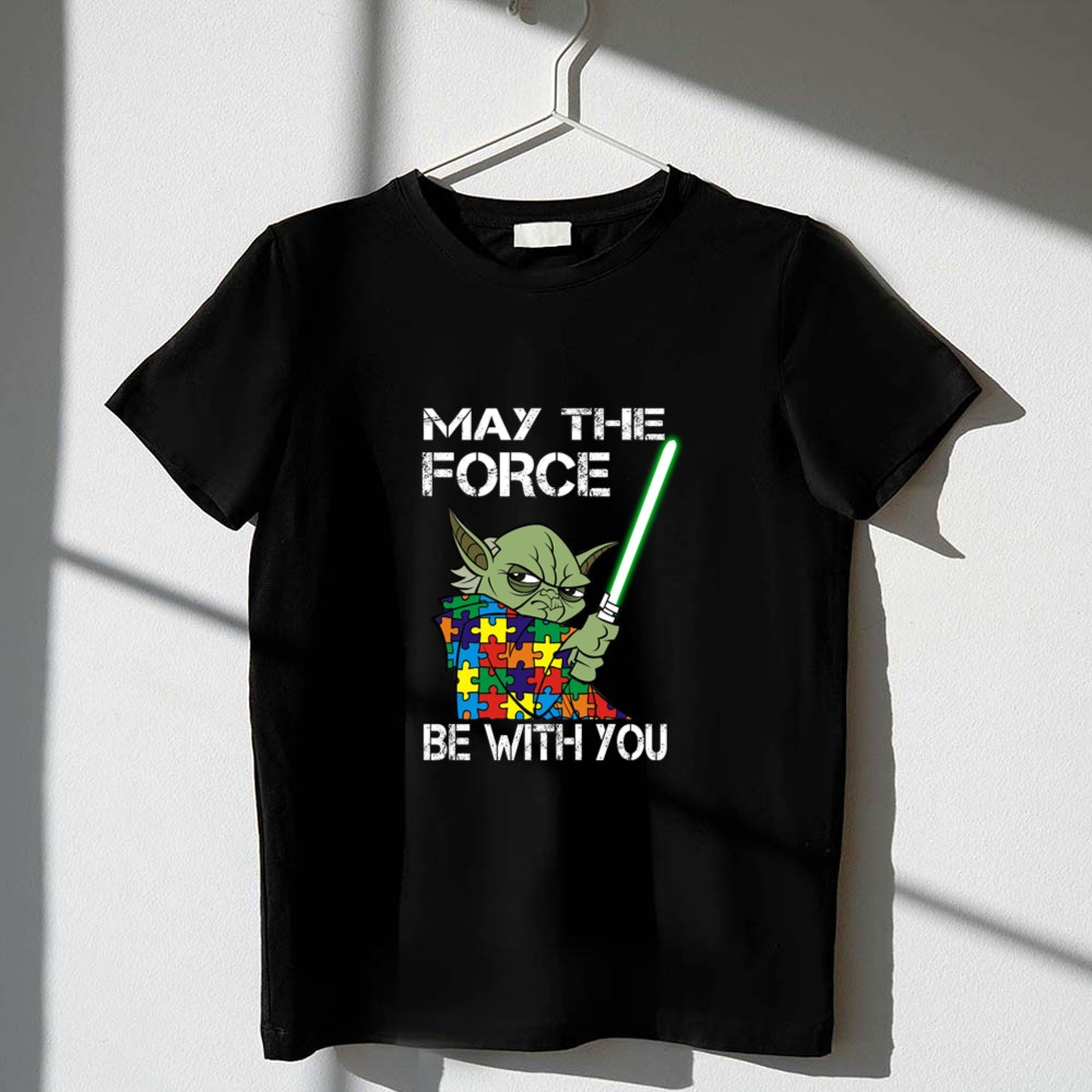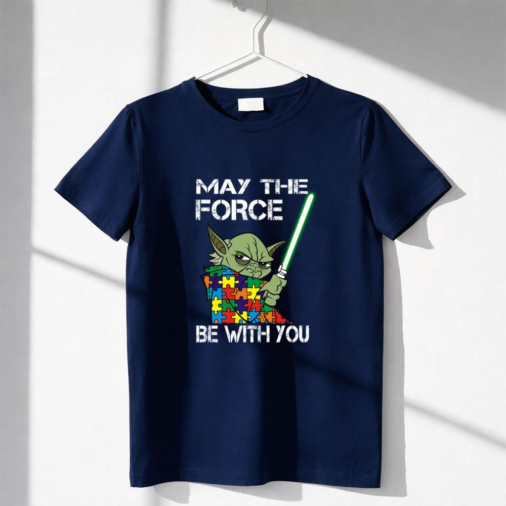 Autism Awareness, May The Force Be With You, Yoda design, puzzle piece pattern, Jedi wisdom, inclusive apparel, fandom pride, geek culture